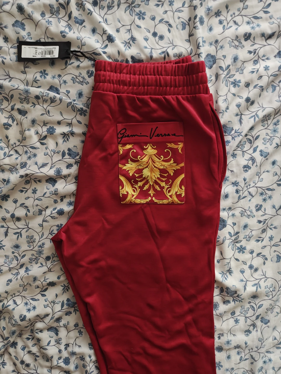 These Gianni Versace sweatpants are a stylish addition to any wardrobe! They come in a vibrant red colour and feature the iconic Versace logo. Perfect for lounging or running errands, these sweatpants offer both comfort and style