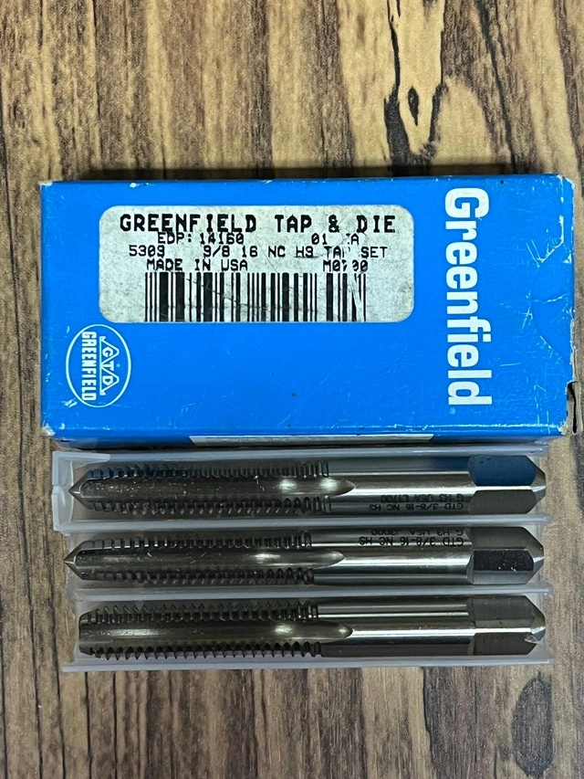 For sale is a Greenfield 9/8 16 NC H9 Tap Set in great condition. I have a lot more tools for machinists. Please click on my name in the ad to see the other listings. Cash only. Pickup is in Etobicoke, near Queensway and Islington.