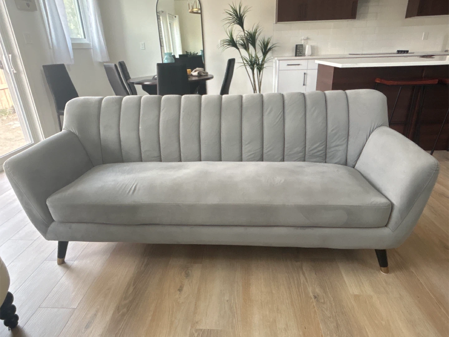 Selling a stylish grey loveseat sofa. It's in great condition and would be a lovely addition to any living room or seating area! Purchased a couple of years ago for $3500.