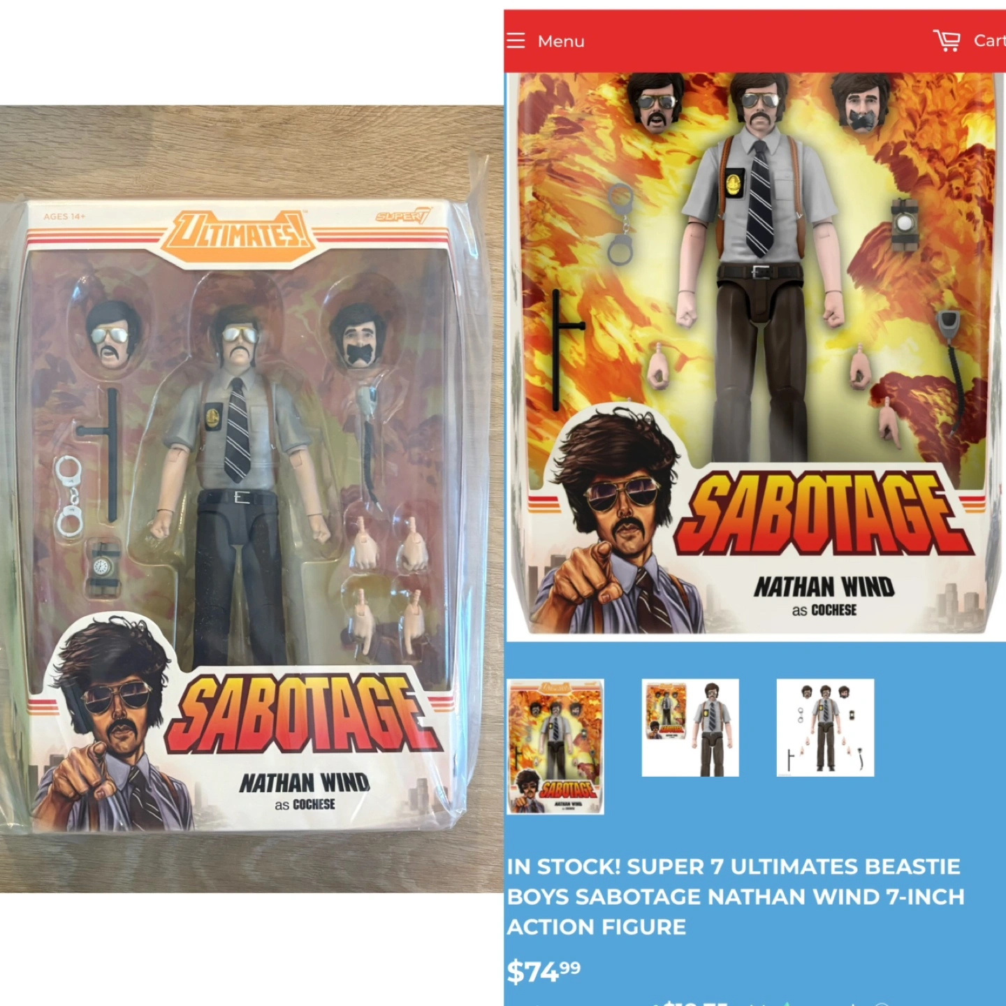 Selling a Super 7 Ultimates Beastie Boys Sabotage Nathan Wind 7-inch action figure! This figure is brand new and still in its original packaging. It's from the Ultimates series and features Nathan Wind as Cochese. Ages 14+