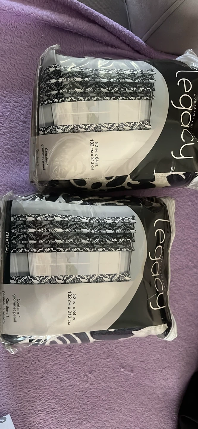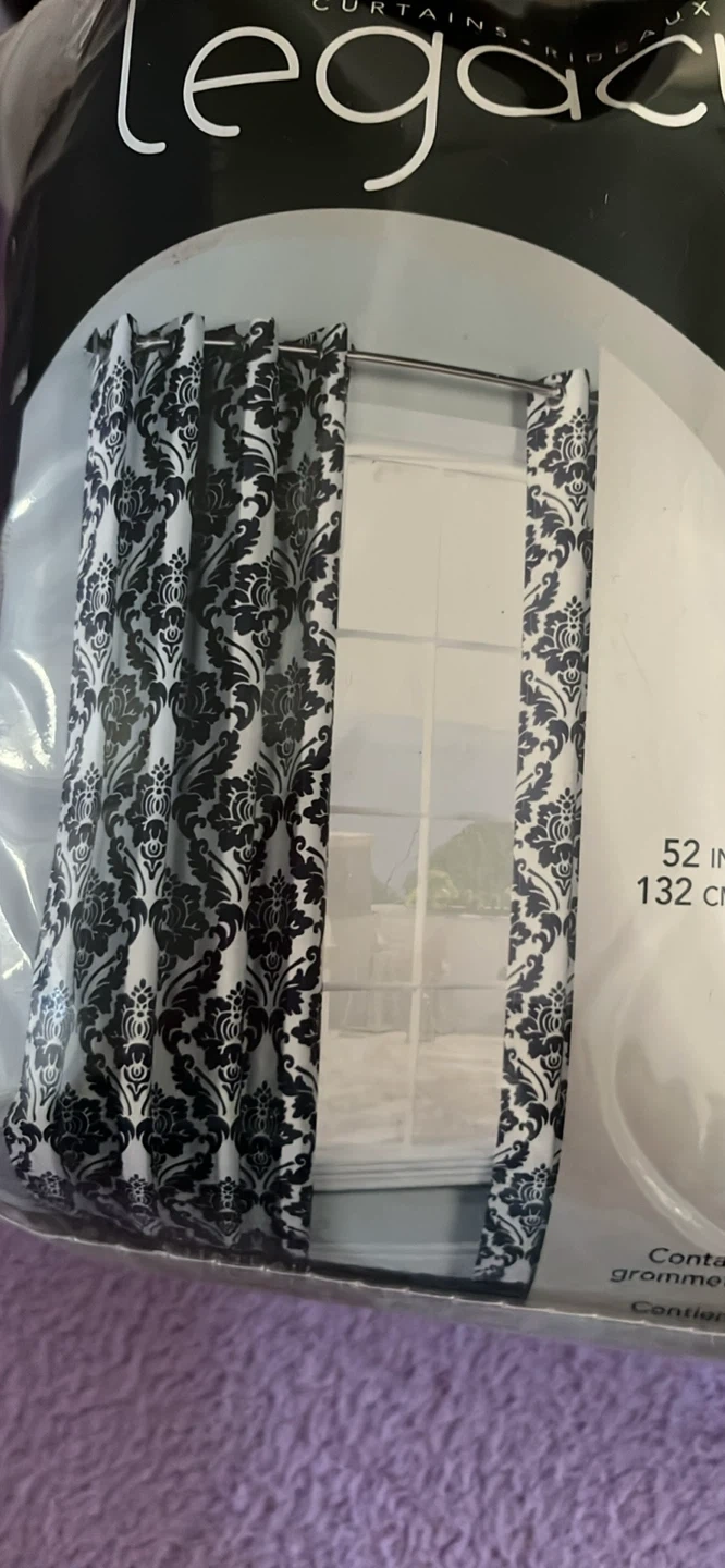 This is a Legacy Chateau curtain panel with a damask pattern. It's 52 inches by 84 inches and made of 100% polyester. Care instructions state it's washable and dryable. It contains one grommet panel.