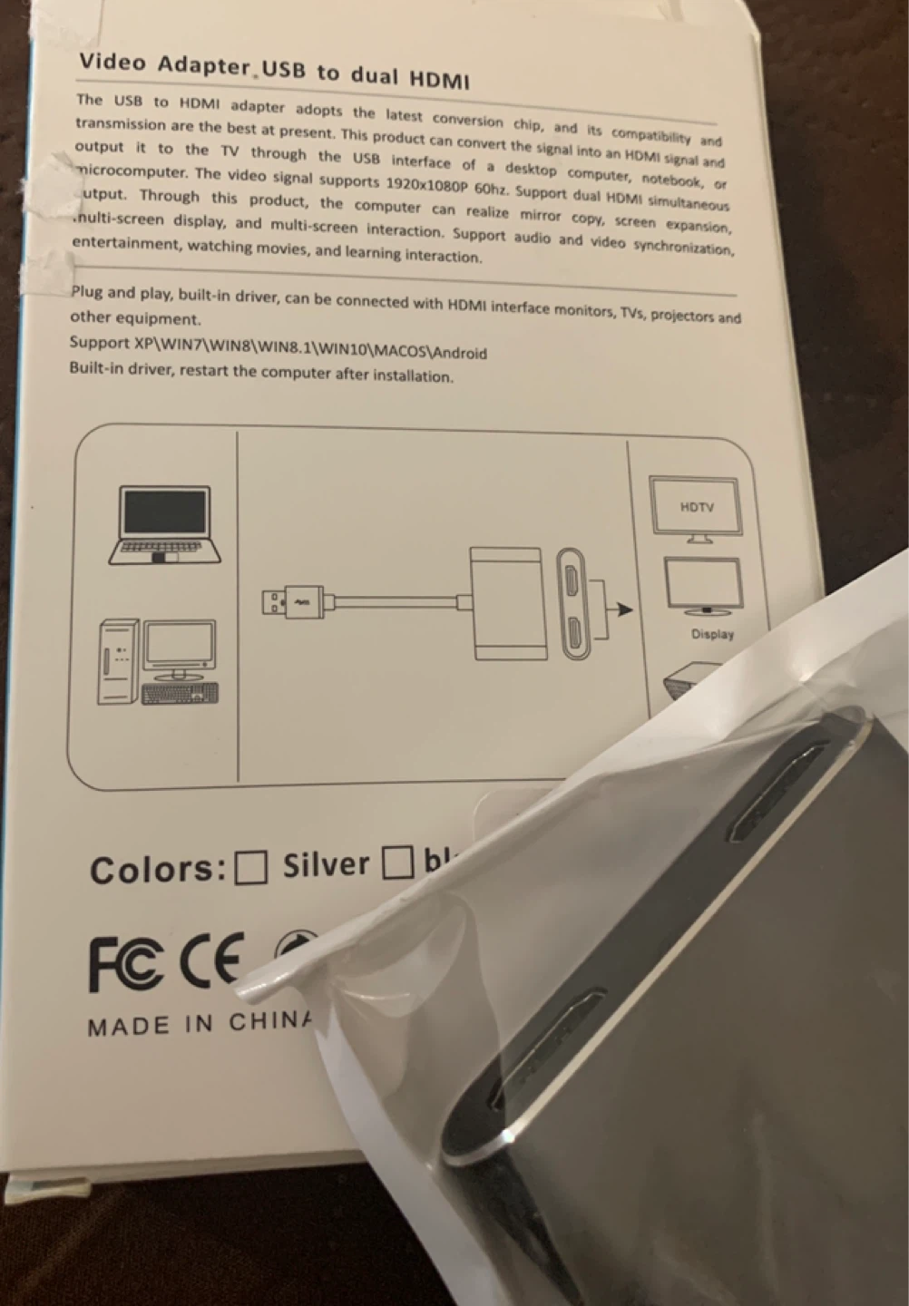 This video adapter converts a USB signal to HDMI output, supporting resolutions up to 1920x1080p. It's plug-and-play with Windows, Mac, and Android devices. Works with monitors, TVs, projectors, and other HDMI-compatible equipment.