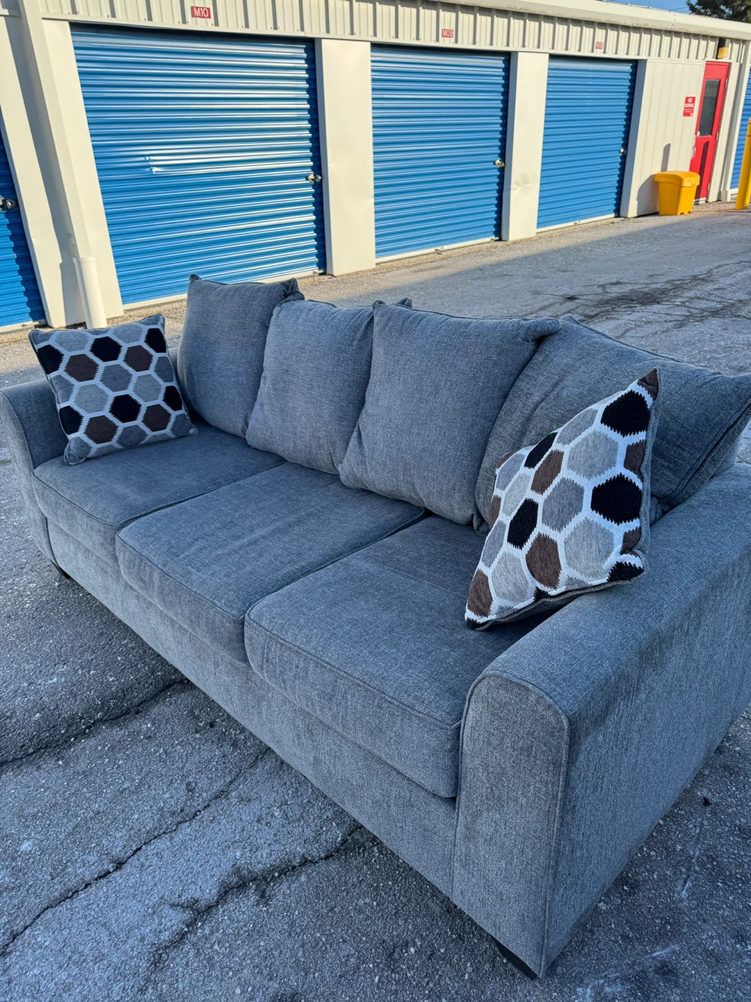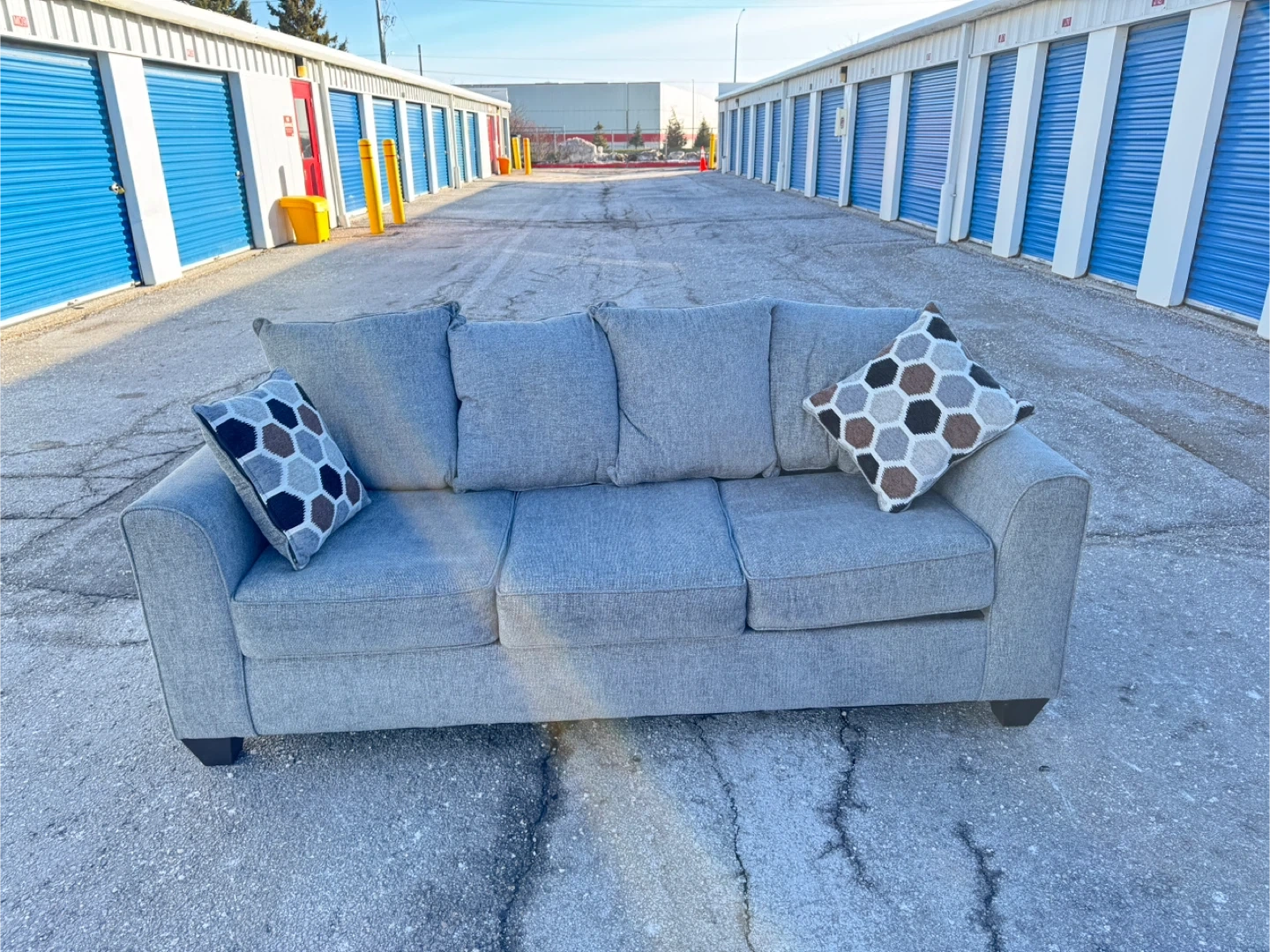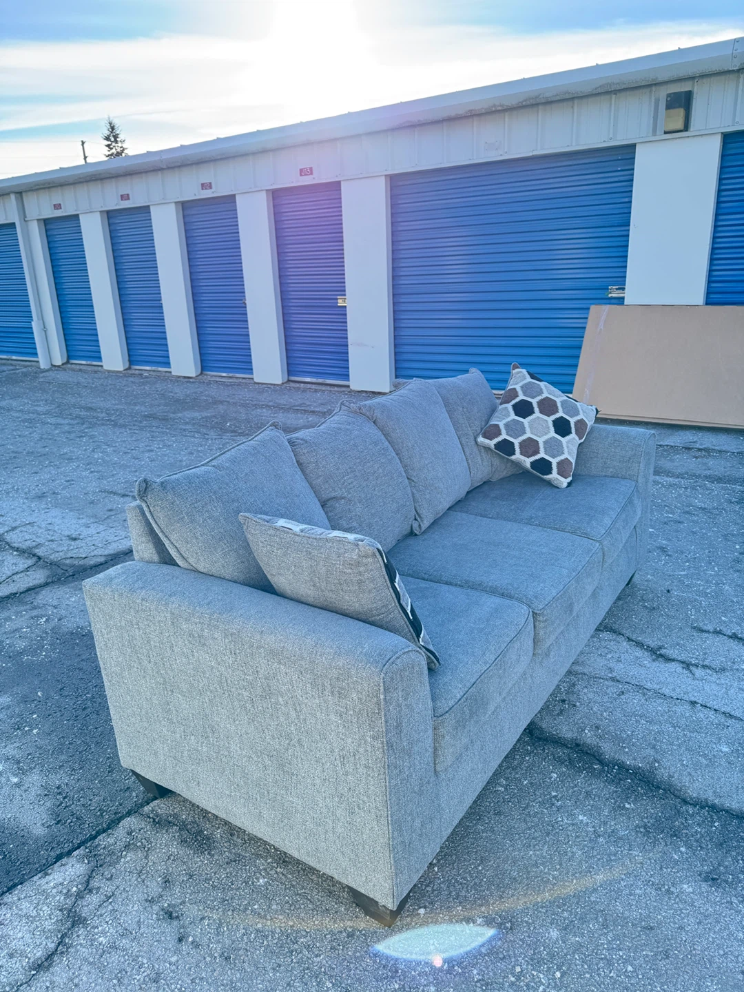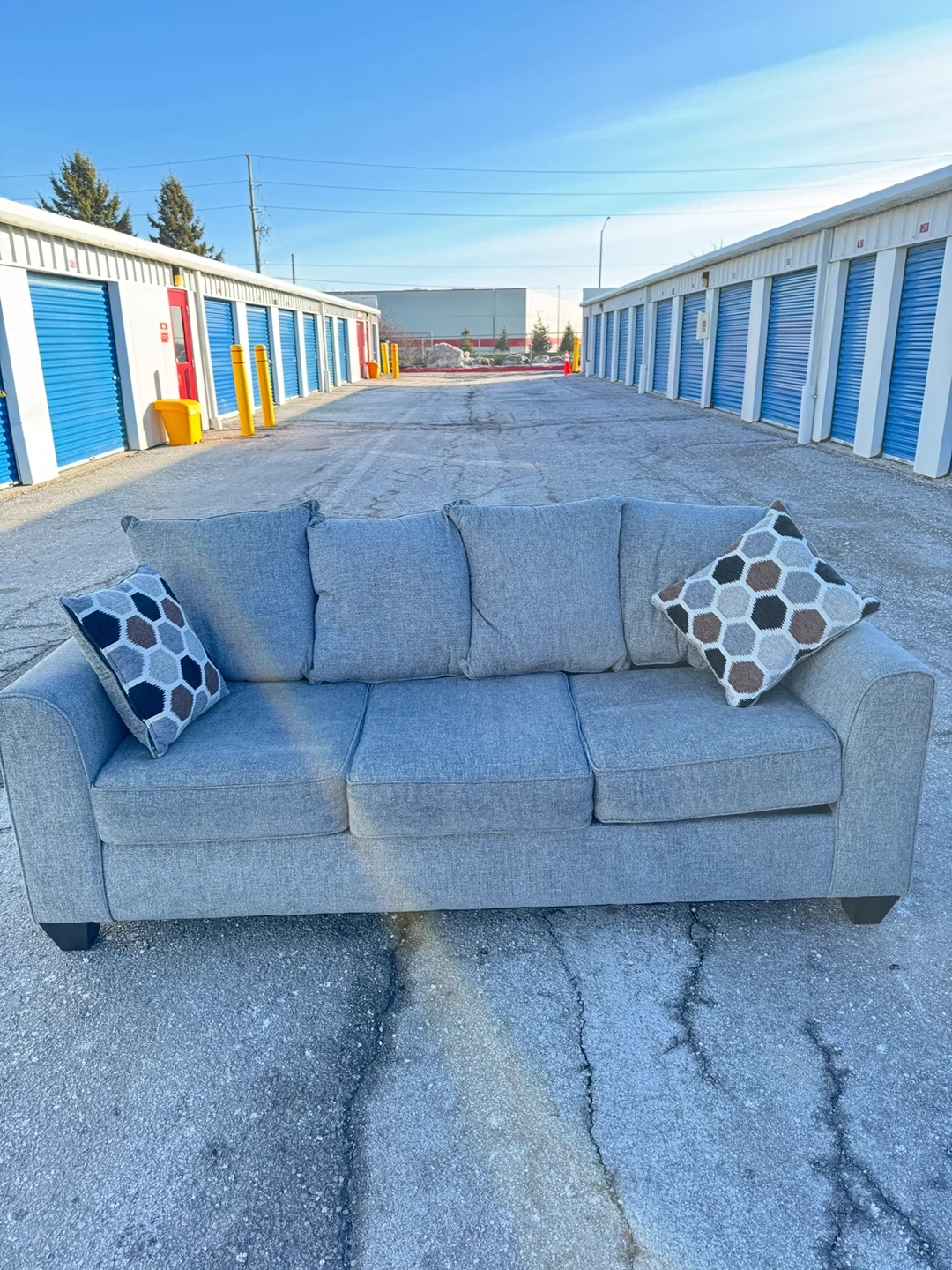 Looking to sell this comfy grey sofa! It comes with the pillows pictured. It's in good condition and ready for a new home. It’s two sofa same thing.two for 500$