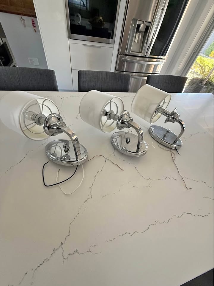 1 / 51 / 5Buy & SellWall lights, $50 in Etobicoke.Wall lights, $50 in Etobicoke.$50Three pendant wall lights in chrome and off white. Comes with the light bulbs, in good condition. Pick up offer.WHERE TO MEETCheck LocationView MapSELLERverifiedPetraEtobicoke W Mall650 reviews0 chats·0 favorites·7 viewsSEND CHAT TO SELLERHi Petra! I’m interested in your listing.Hi Petra! I’m interested in your listing.Get the Karrot app to chatSign In to chat