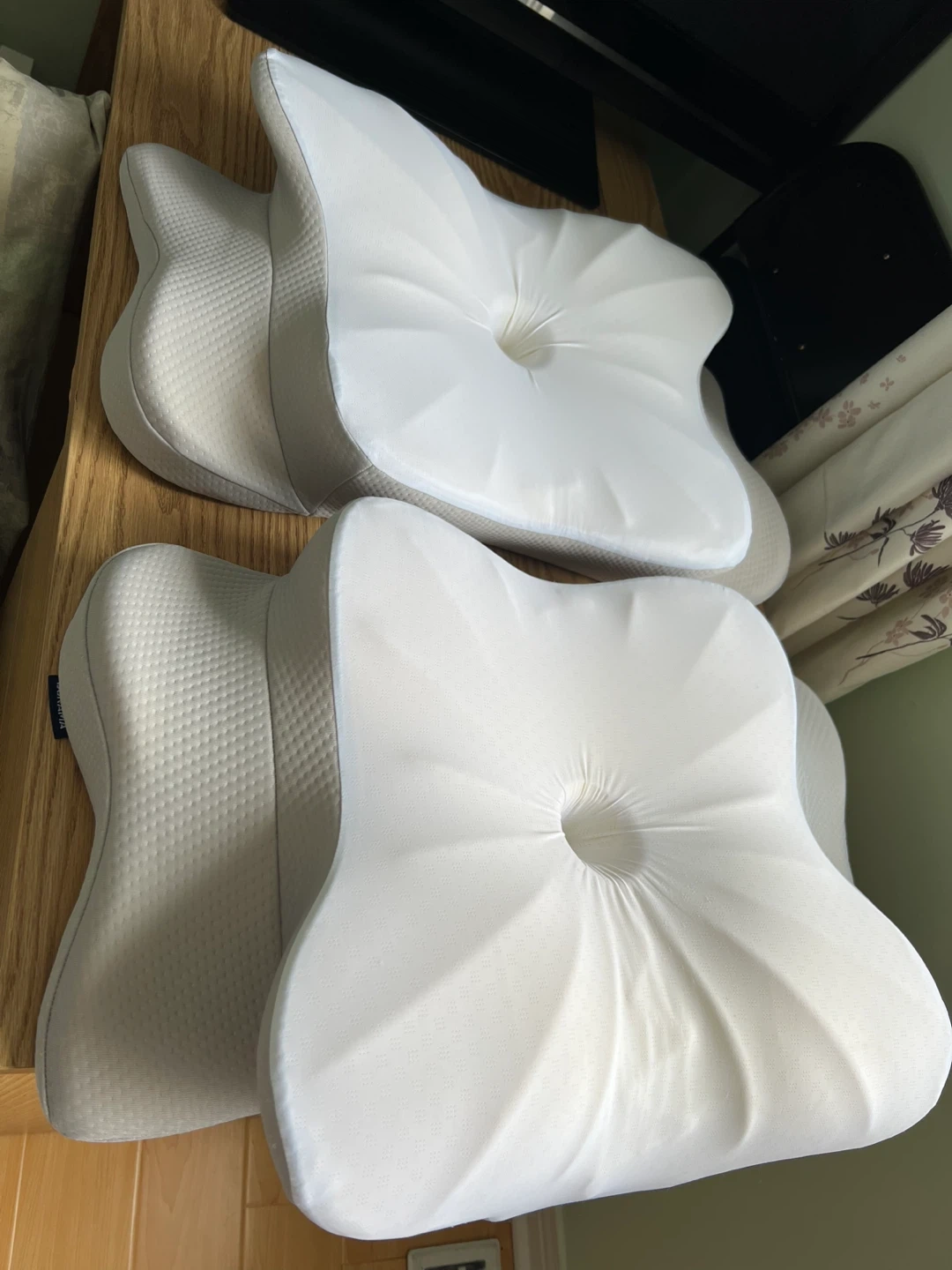 Selling a set of two contour memory foam pillows! They are designed to provide neck support and promote proper spinal alignment while you sleep. They are in great condition and ready to help you get a good night's rest