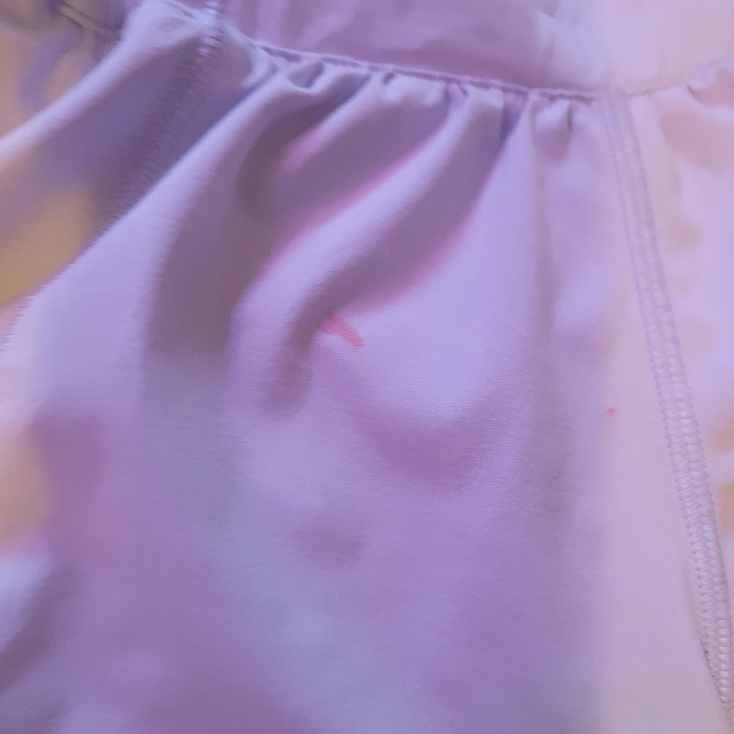 These are Lululemon running shorts in a light purple colour. They're a size 0. There are a couple of small pink marks on the front.