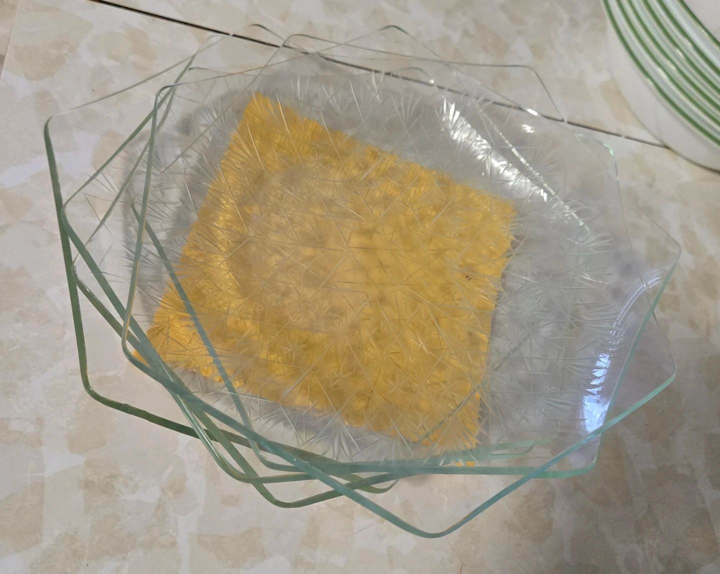 Set of 5 Hexagonal Glass Plates with Etched Design