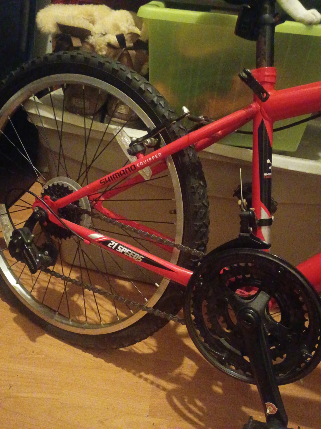 Huffy mountain bike with 21 speeds. Features Shimano equipped components. This bike is great for trail riding.🥕🥕 the tires are 24x1.50