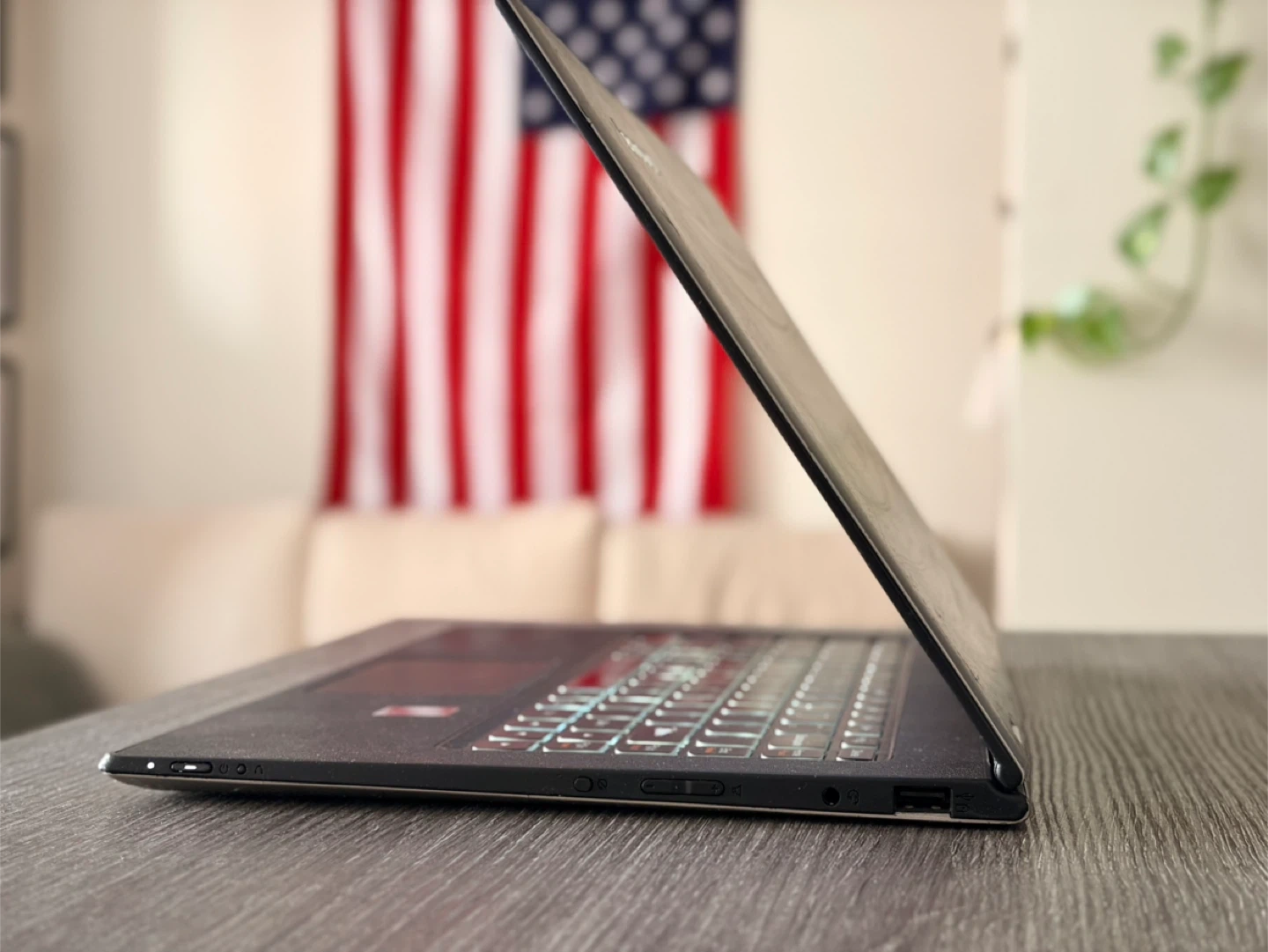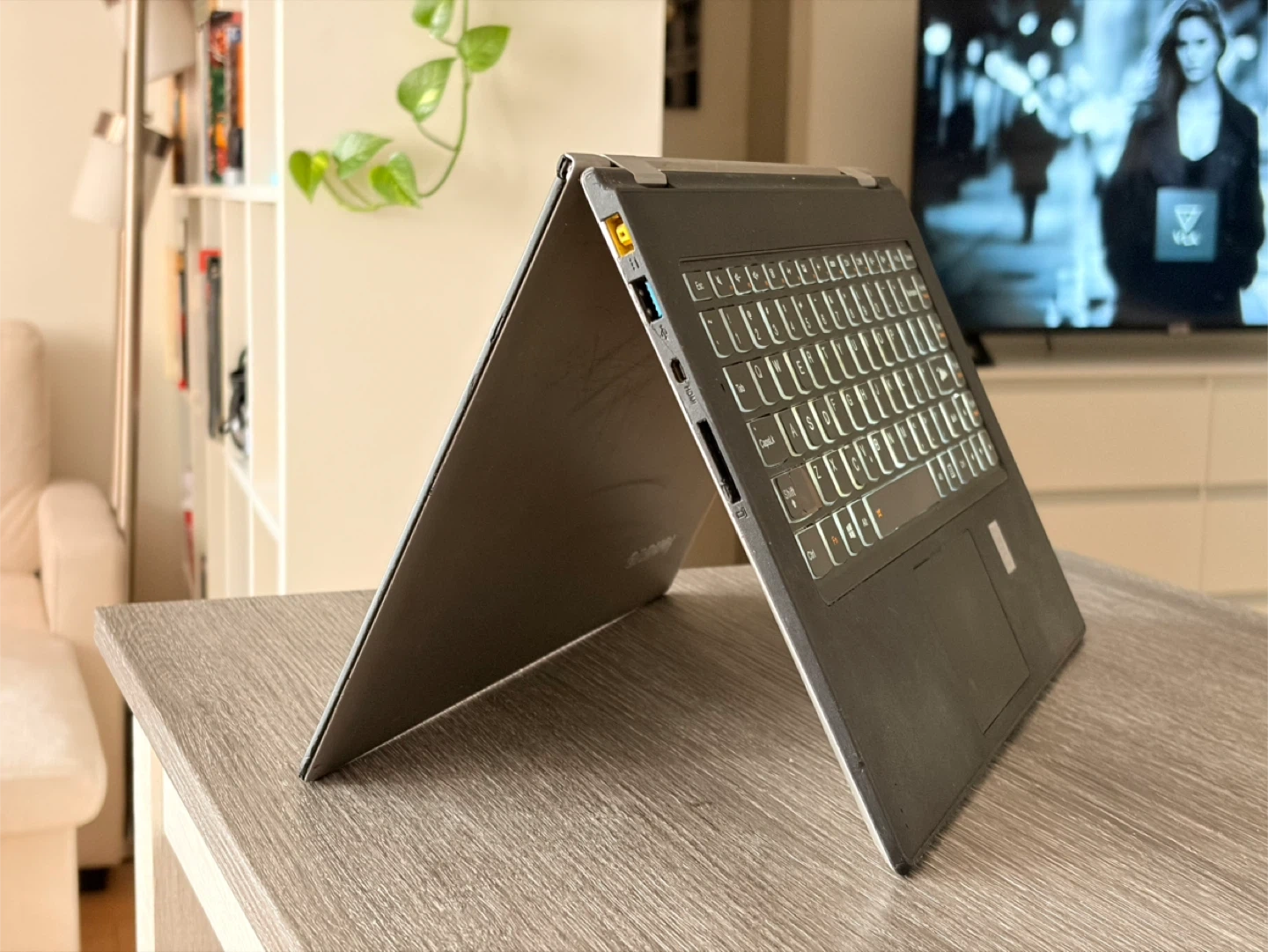 This is a Lenovo Flex 4 2-in-1 convertible laptop. It features a backlit keyboard and an Intel Core i7 processor. It's a versatile device that can be used as both a laptop and a tablet.