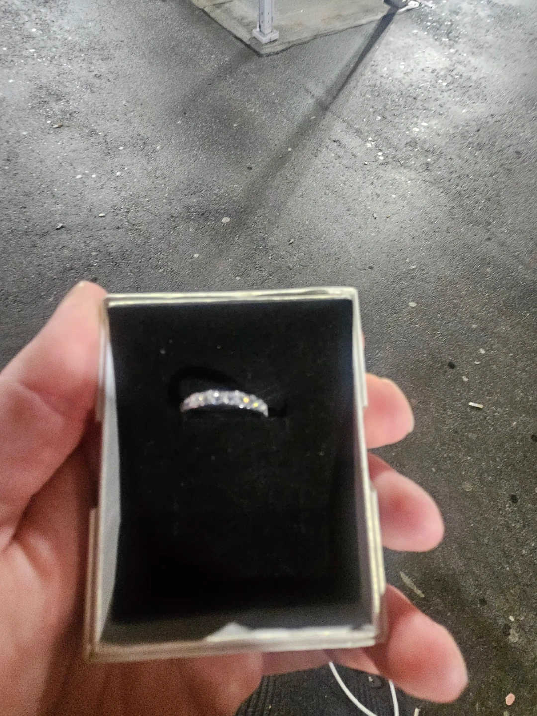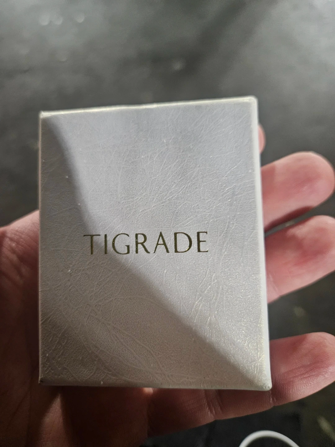 This is a TIGRADE ring presented in its original box. The ring has a band with multiple clear stones. A nice accessory for any occasion! Titanium with cubic Zercoina gems. Size 7