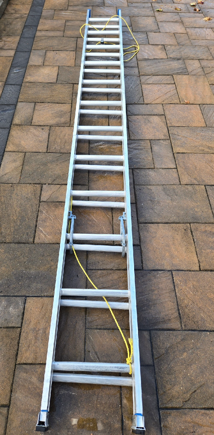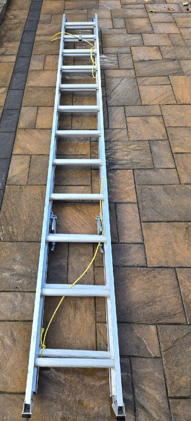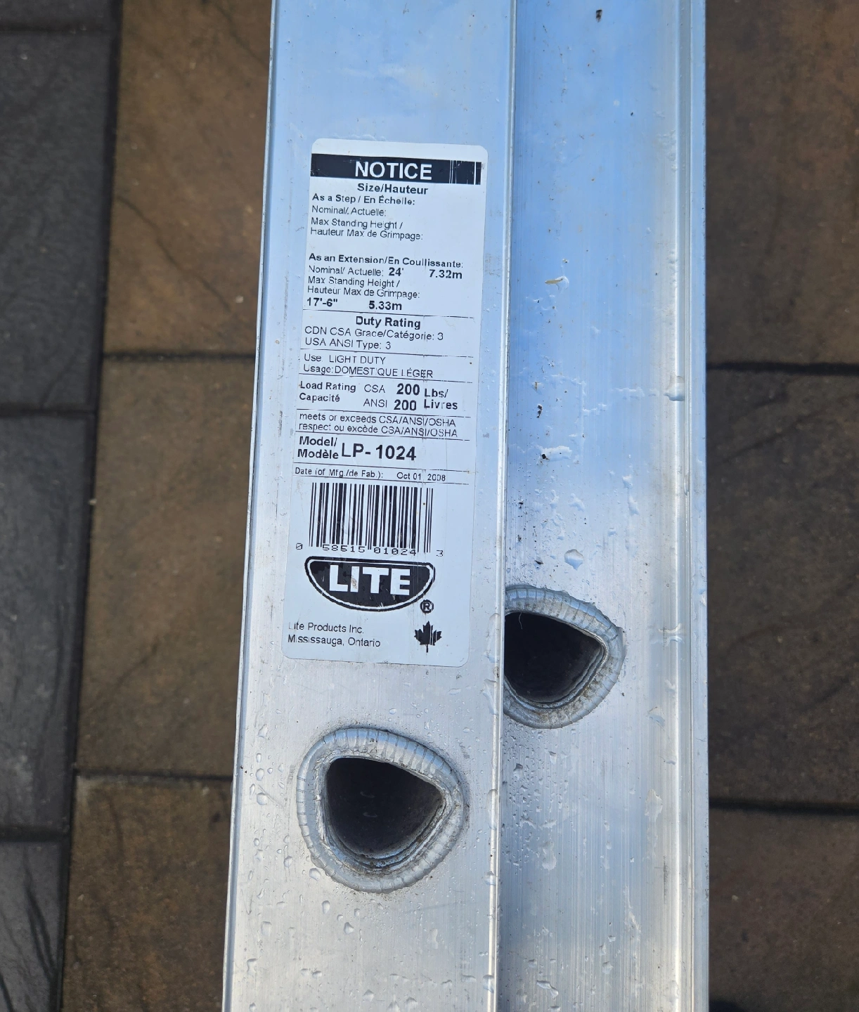 10Featherlite 24 FT Extension Aluminum Step Ladder Clean and sturdy - Max Standing Height: 5.33m (17'6") - Max Extension Height: 7.31m (24') - Load Rating: 200 lbs Pick up from Richmond Hill Cash only