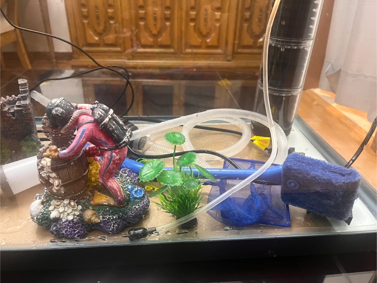 Selling a used fish tank comes with reusable filter, heater, plants and aquarium deco items It's in good condition and ready for a new home for your aquatic friends