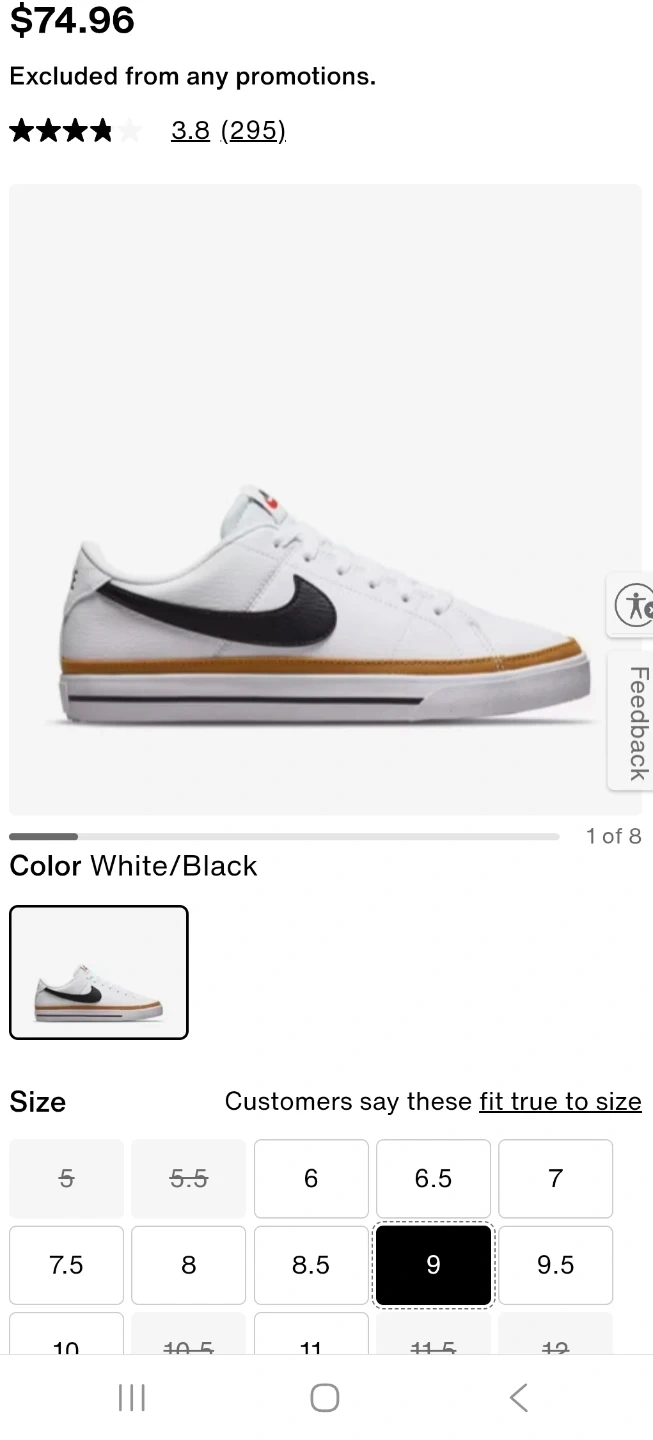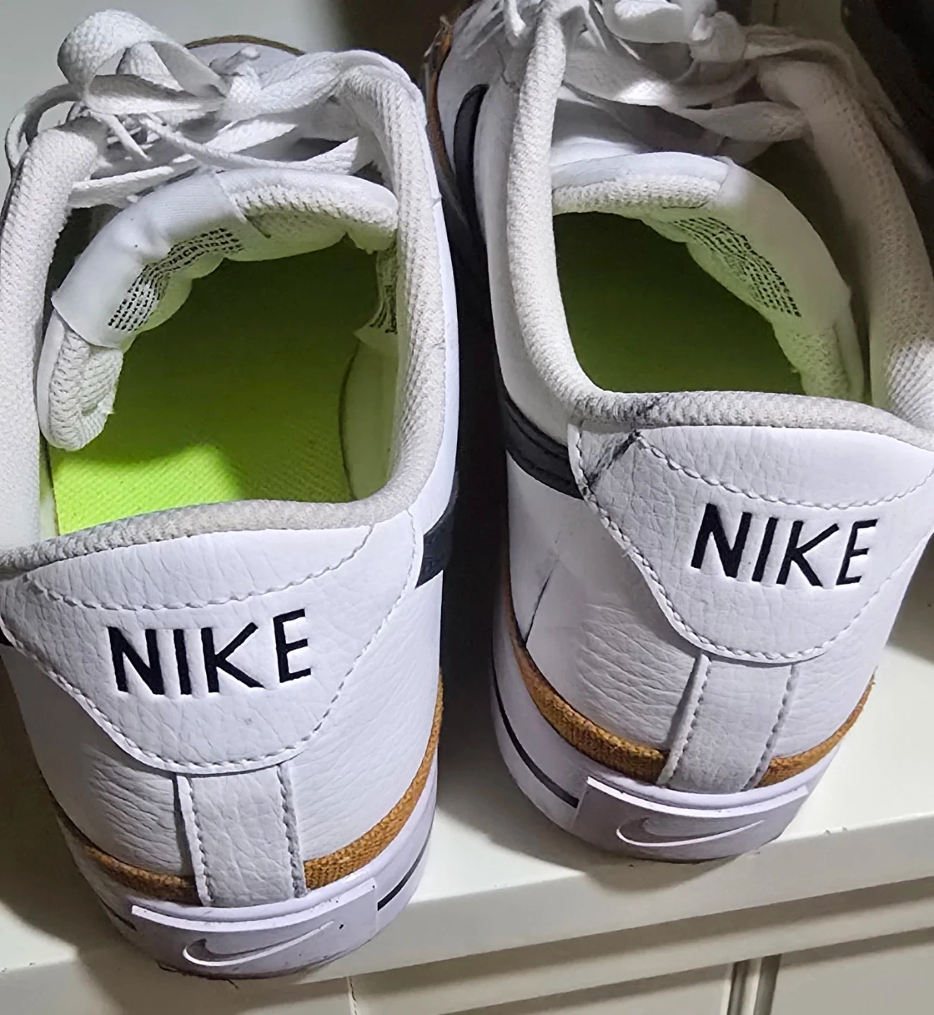 🥕Classic Nike low top sneakers in white with black accents. Leather upper and rubber sole. Features a Nike Swoosh logo on the side and Nike branding on the heel. Made in Indonesia. Size is US Women's 9 runs small fits like a