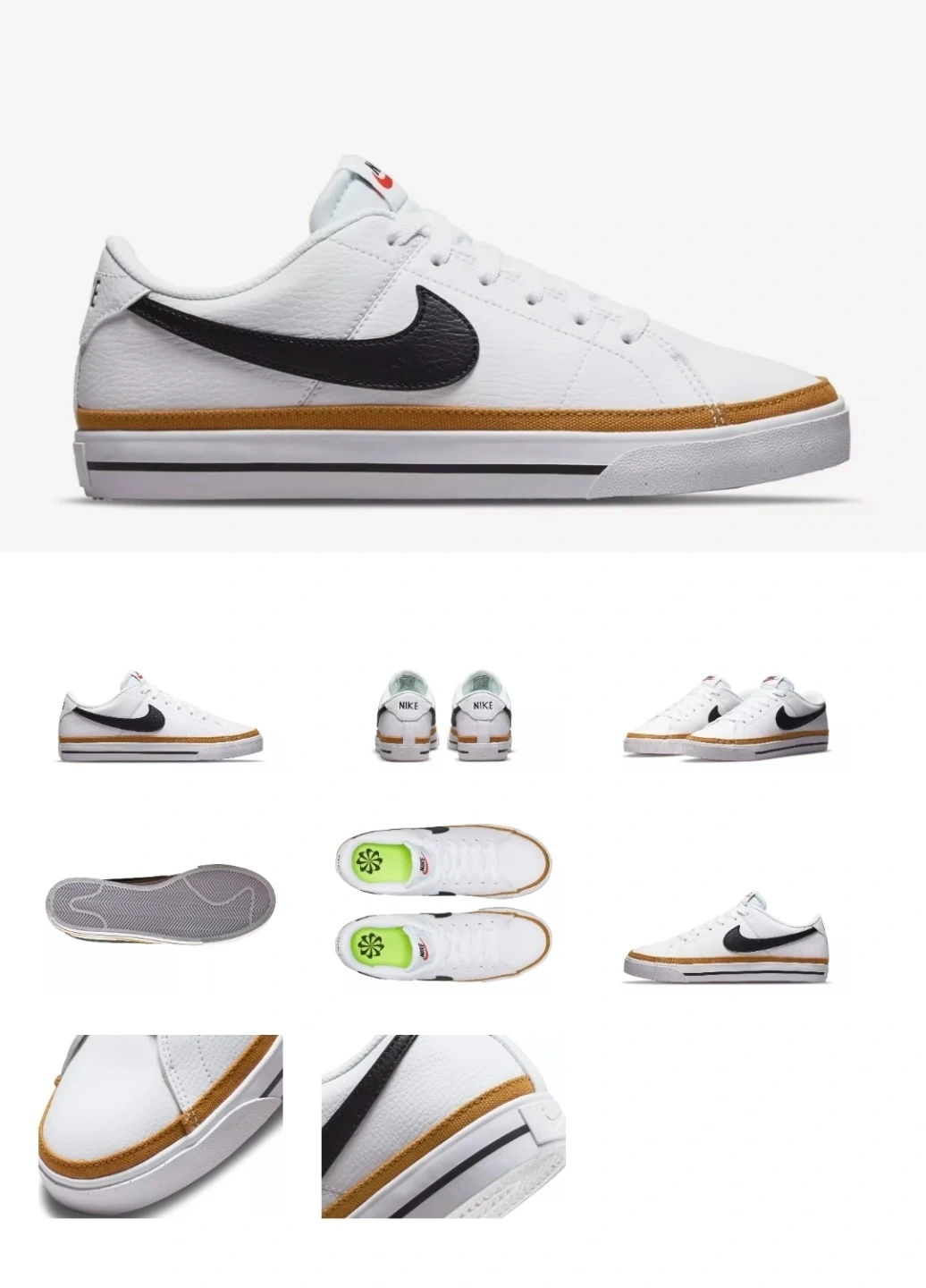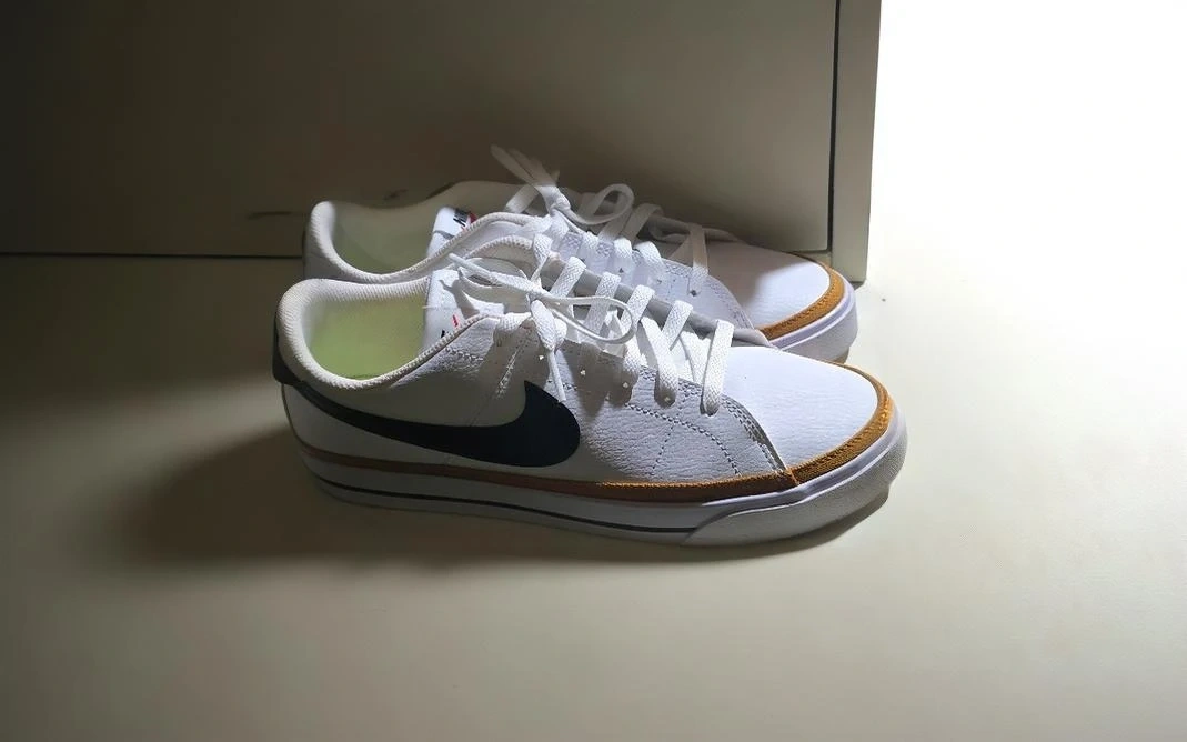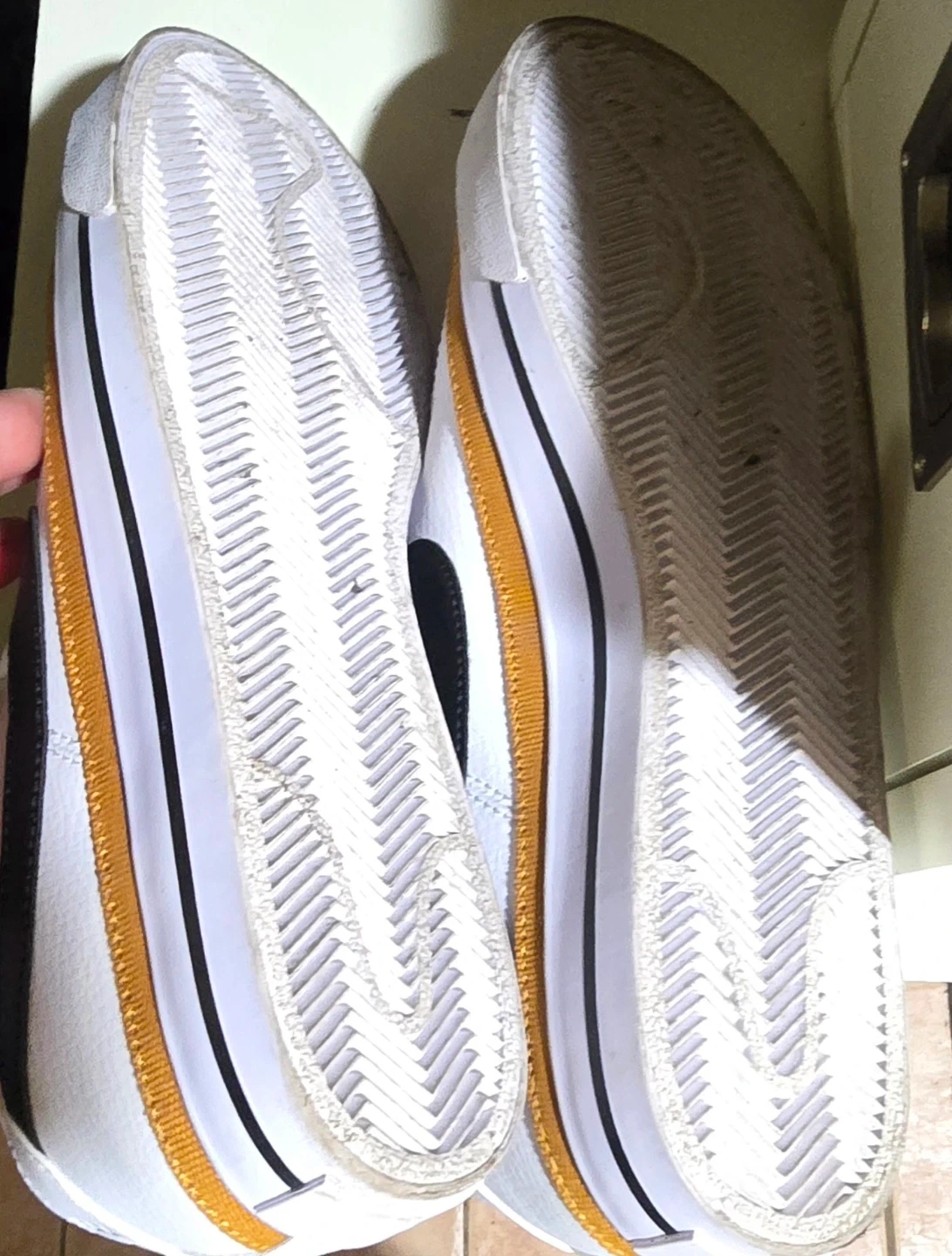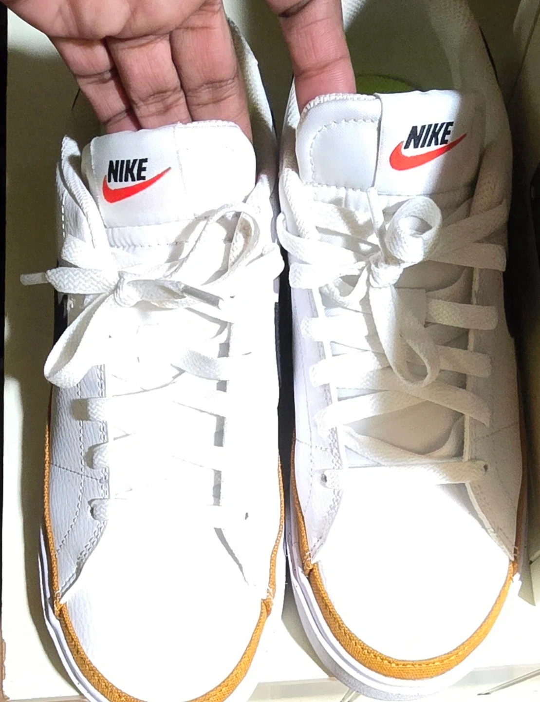 🥕Classic Nike low top sneakers in white with black accents. Leather upper and rubber sole. Features a Nike Swoosh logo on the side and Nike branding on the heel. Made in Indonesia. Size is US Women's 9 runs small fits like a