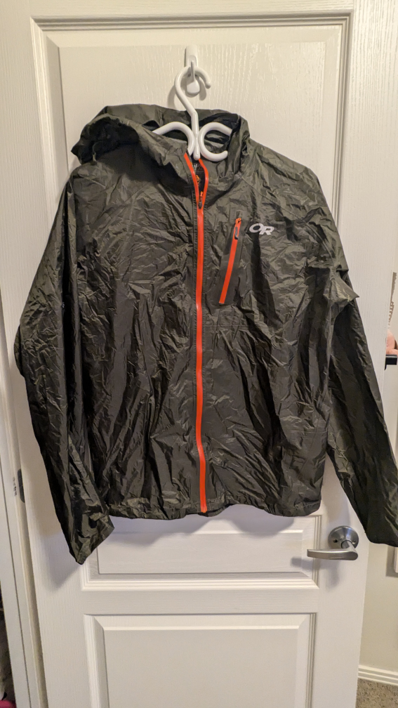 Really well-rated ultralight packable rain jacket, breathable, and in excellent condition. Just hasn't fit me for a while so I'm letting it go.