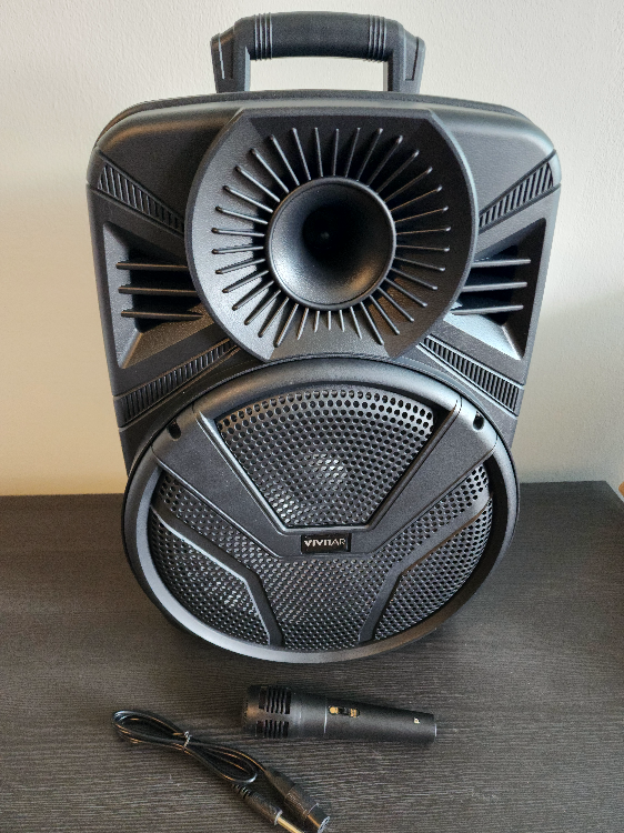 390Multi-colored LED lights Rechargeable battery high quality sound listen to music wirelessly wired mic included wireless. party speaker USB charging cable user manual pick up location downtown toronto