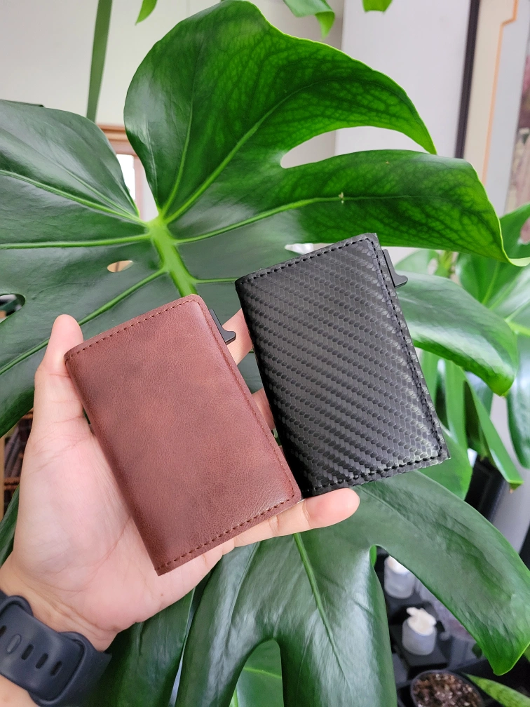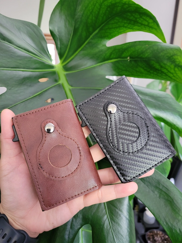 Cardholder wallet • Carbon Fibre Black ($20) SOLD • Soft Brown Leather ($20) ~~With Air tag holder ~~Holds 8 cards maximum ** ALL SALES ARE FINAL. NO REFUND ACCEPTED. ** PICK UP INTERSECTION: Keele and Finch, North York