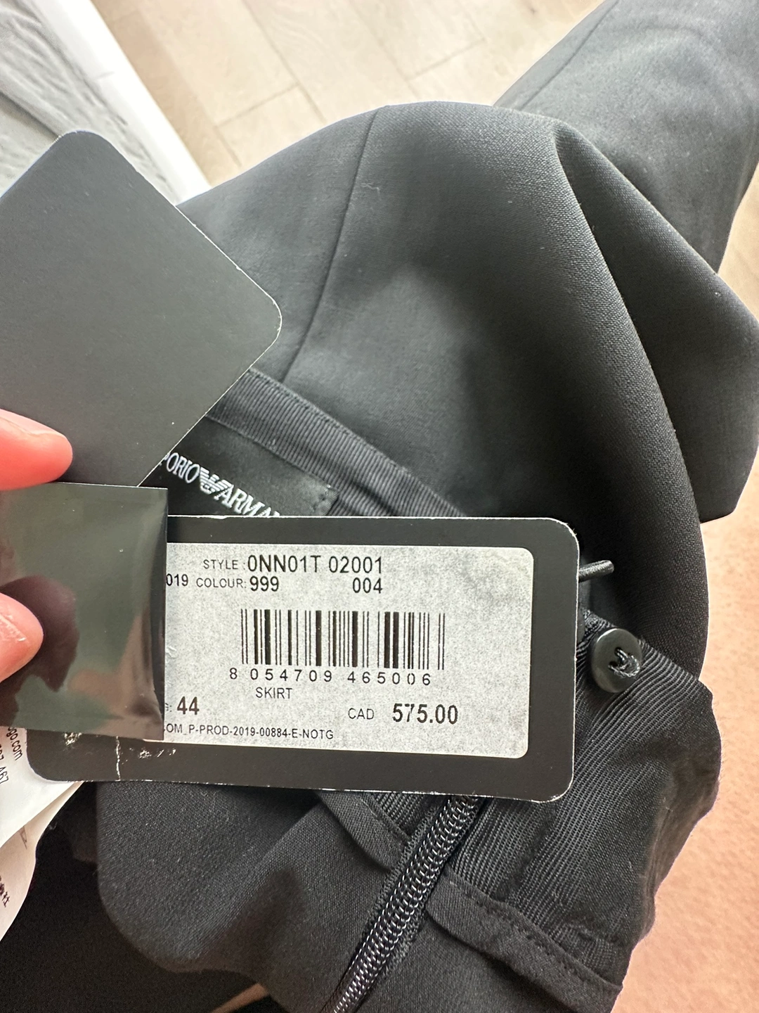 Emporio Armani work skirt. Never worn, bought it just before covid hit. It’s a work outfit, good for job interview, work attire. It’s black so it will go with anything.