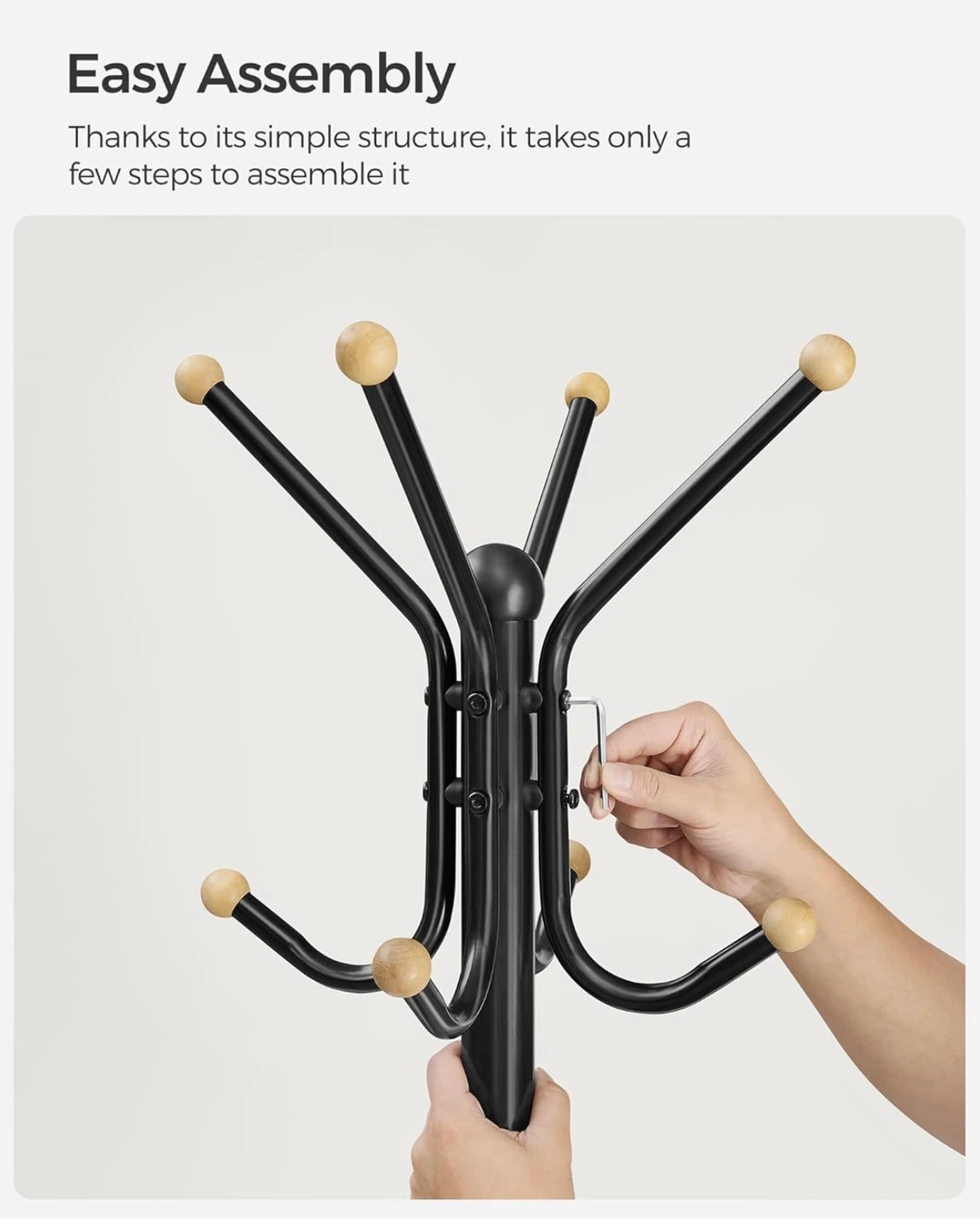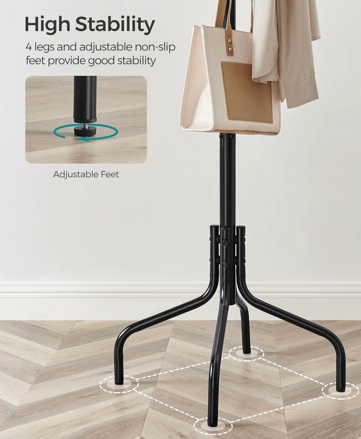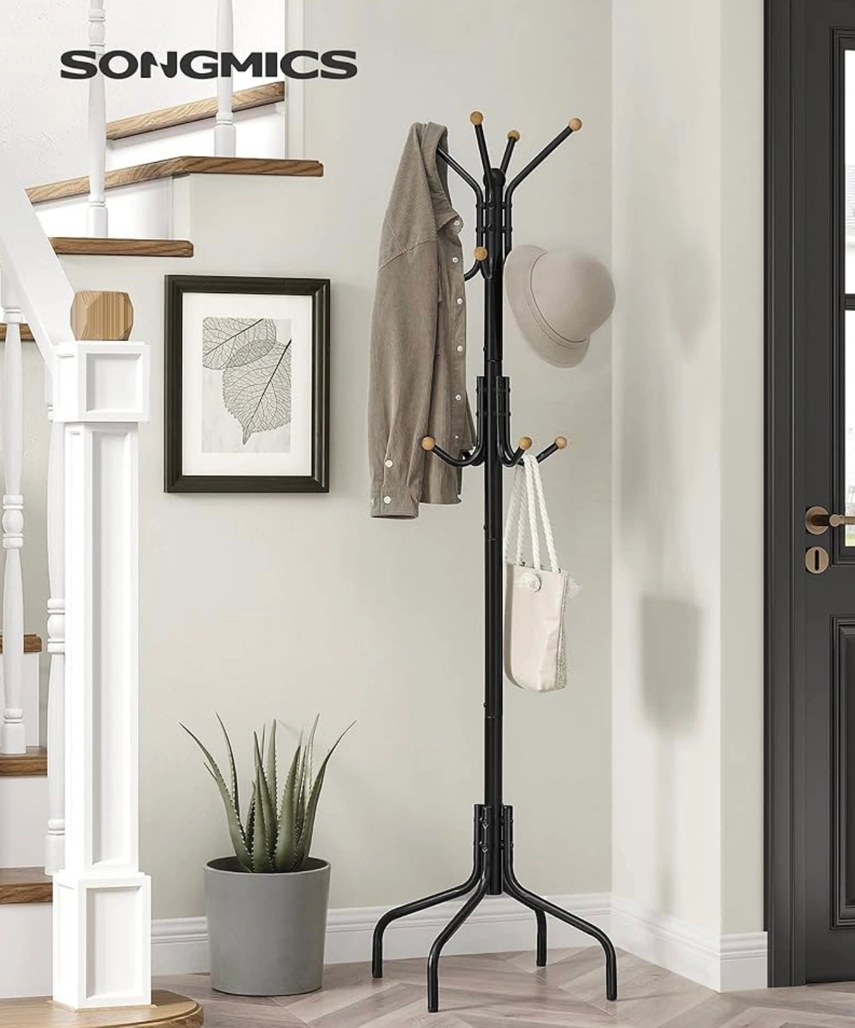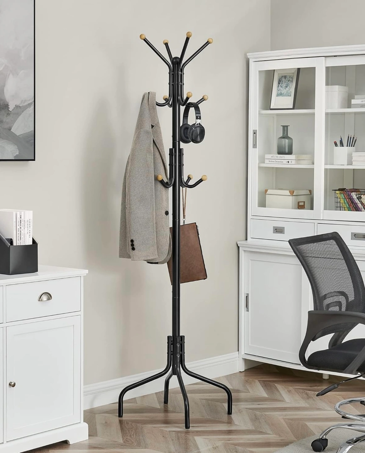 96Quality steel pipes with a rust-resistant coating make this freestanding coat rack durable for long-term use