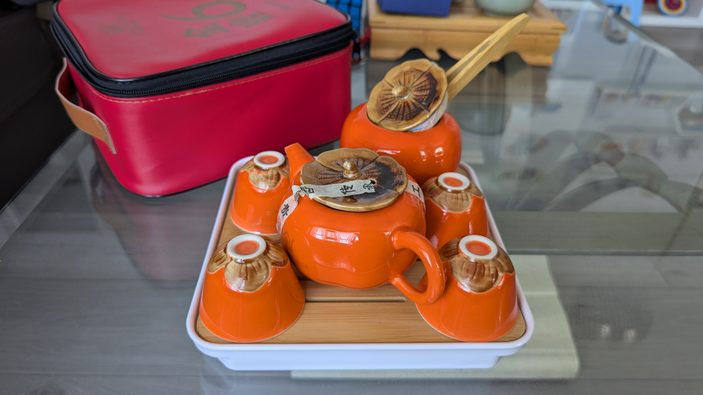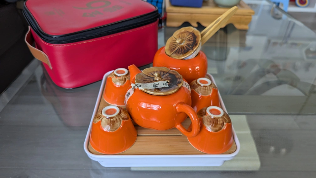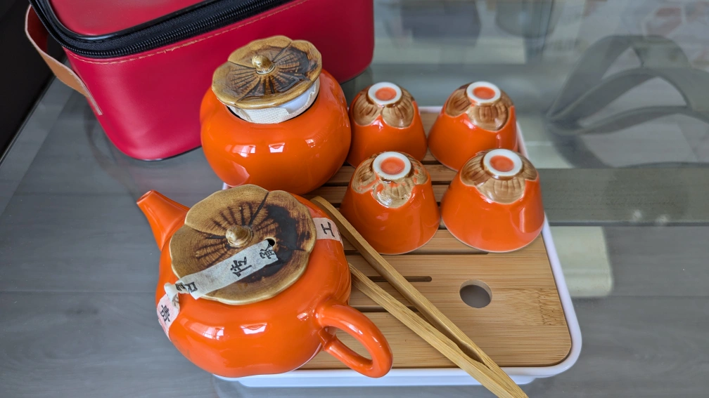 Beautiful Persimmon-Shaped Ceramic Tea Set - Brand New