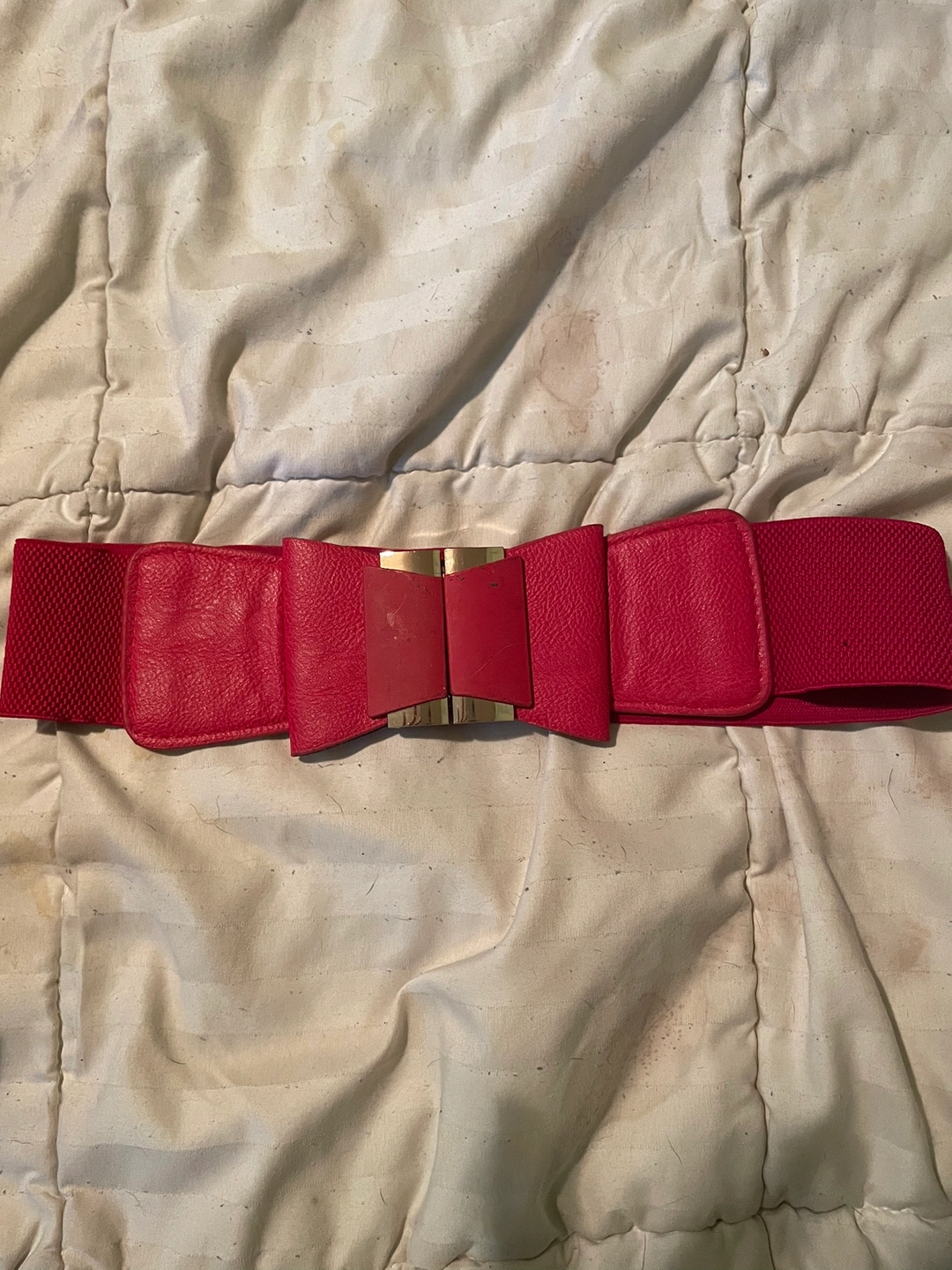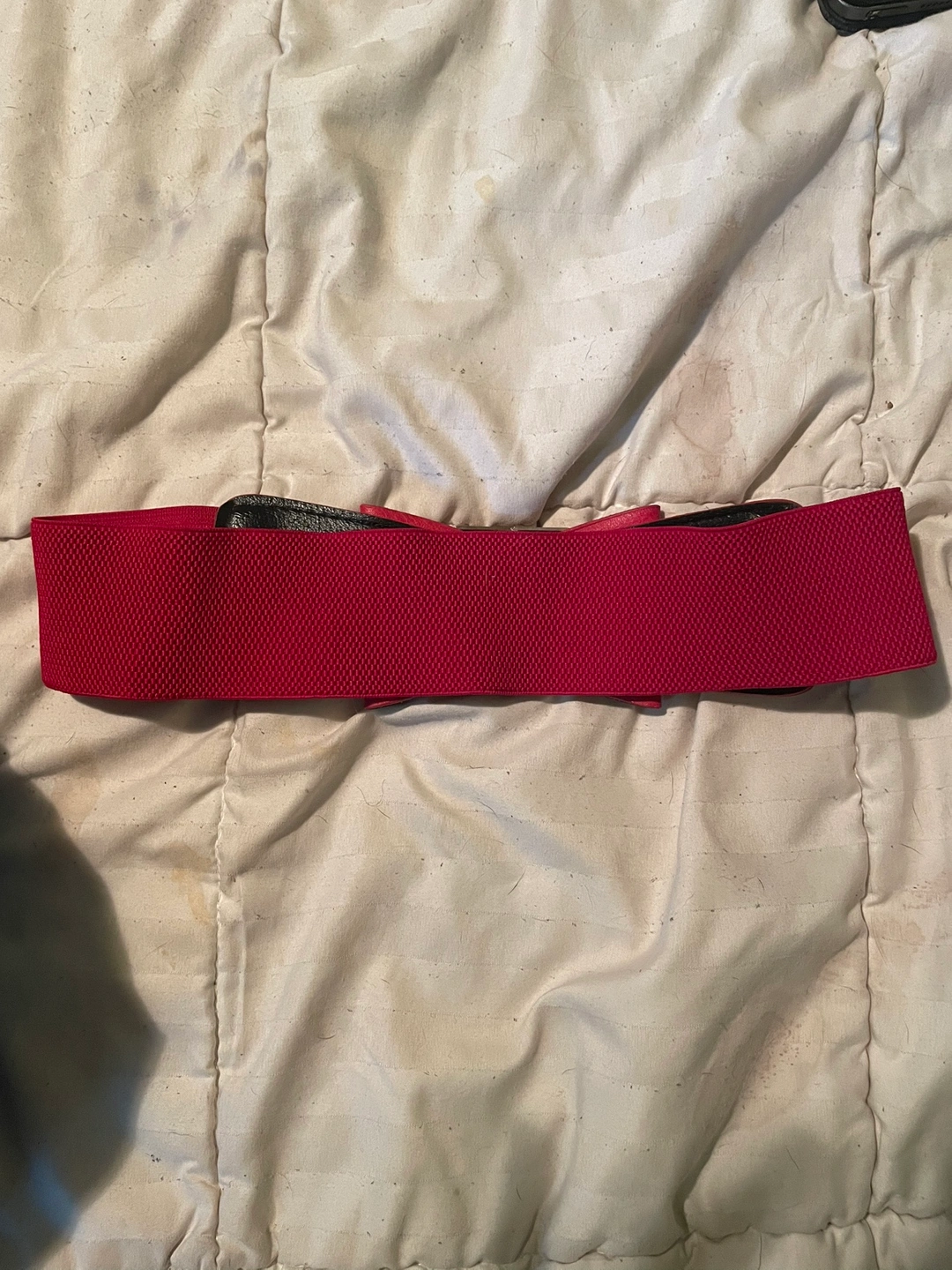 1000+Red clasp belt Never worn, just had it sitting in my closet Has 2 clasps to buckle the belt and elastic band strap for comfortable wear and ranges in sizes