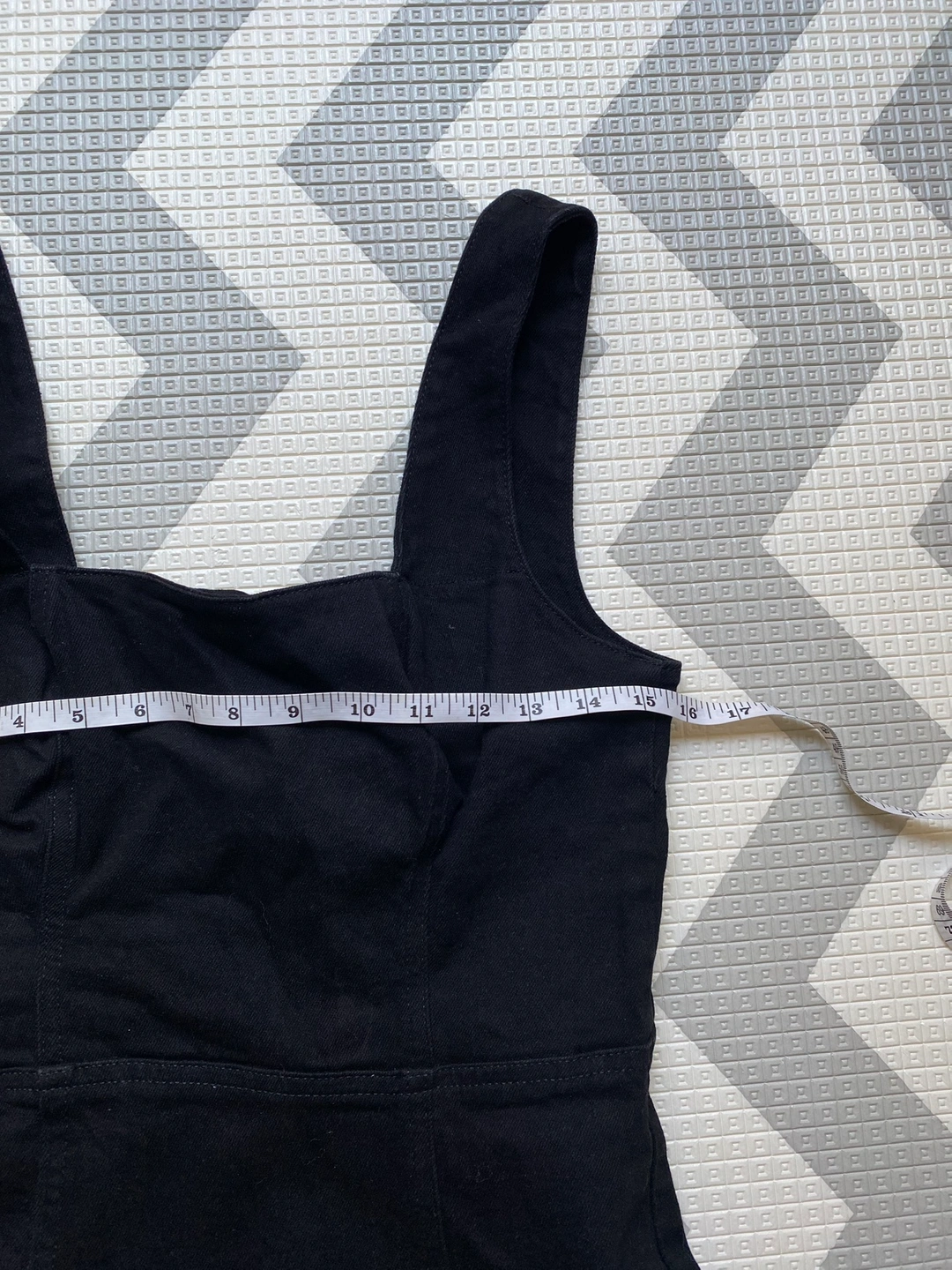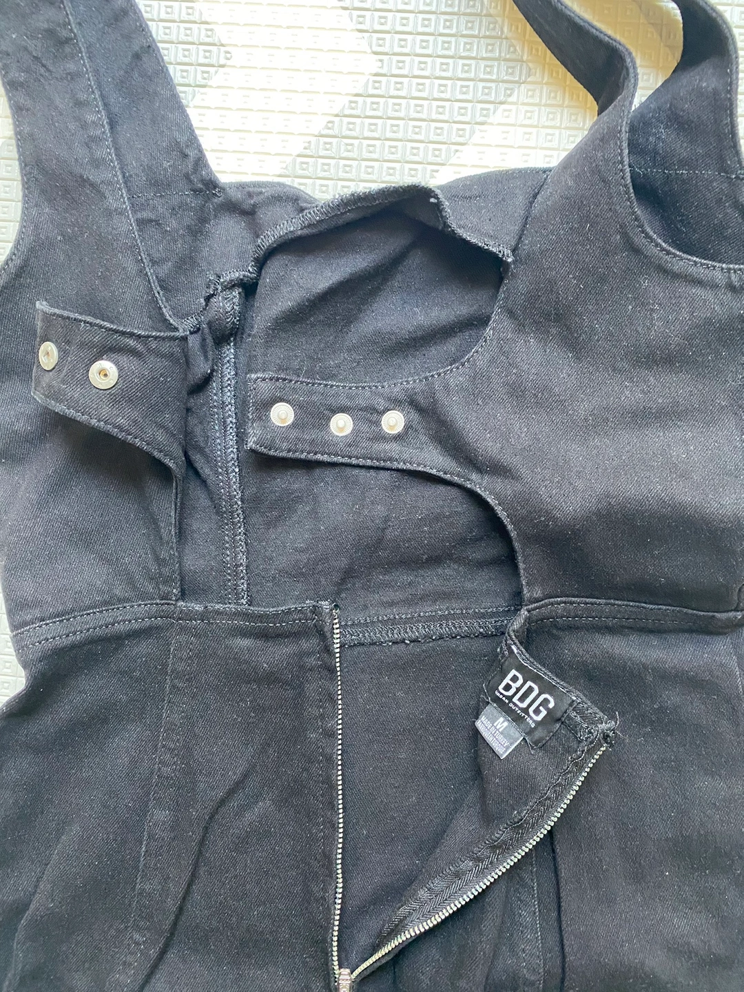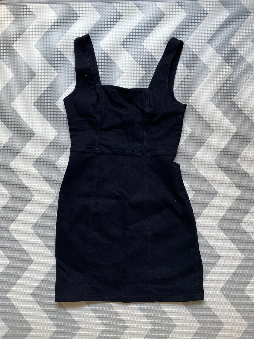 610Mini denim dress in black with back cutout Back zipper and snap button closure Thick straps Worn once or twice. Pick up near Sheppard west station