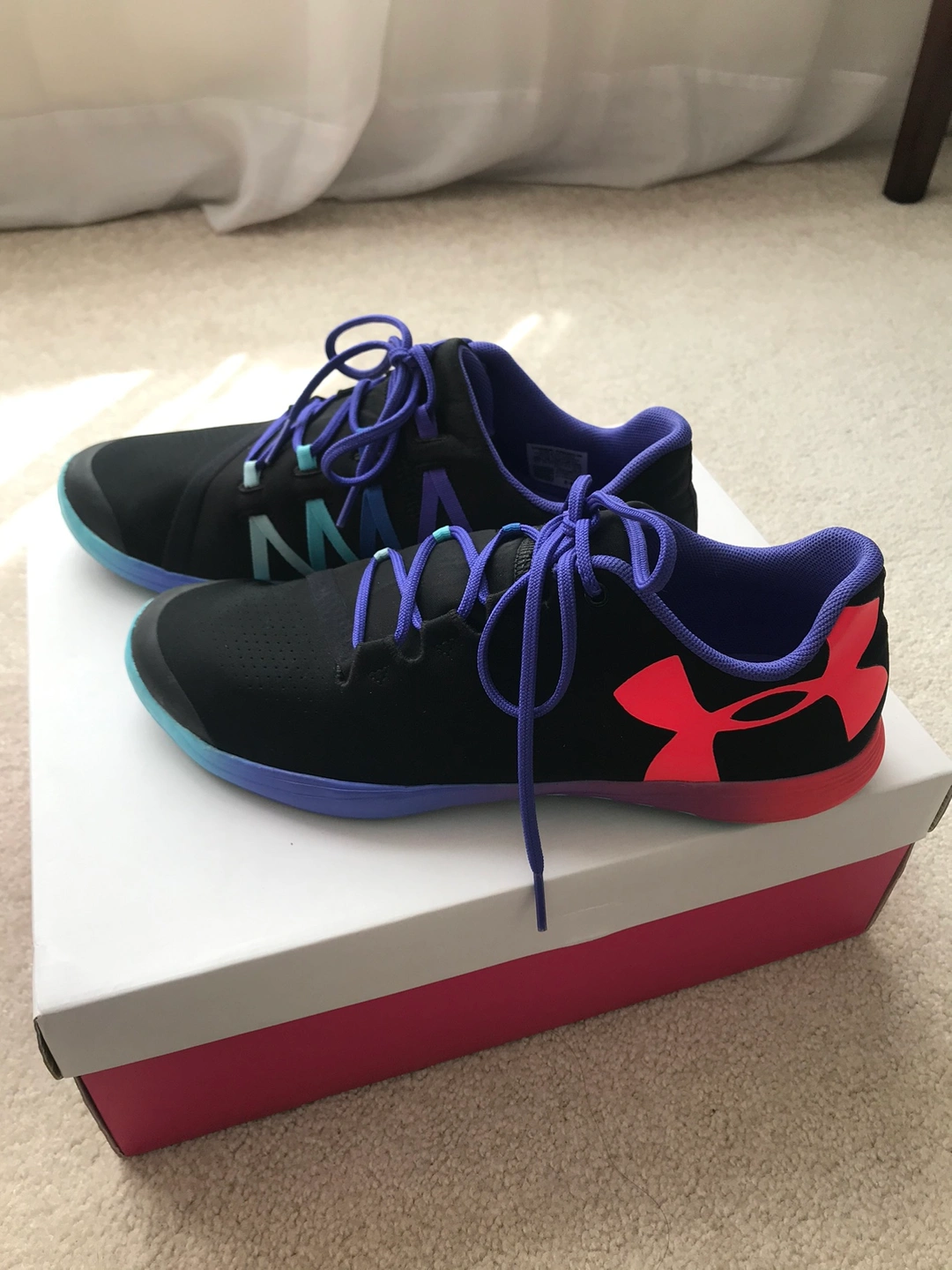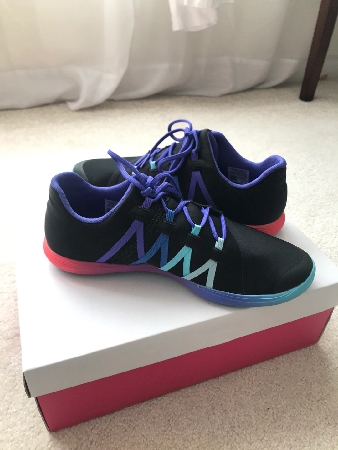 610Black with rainbow gradient accents and purple laces Worn once or twice Size 6Y, possible to fit an adult as well No box Pick up near Sheppard west station