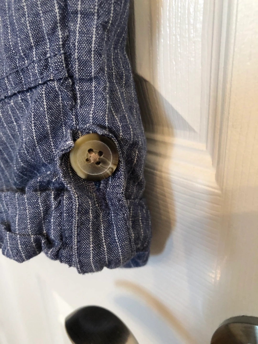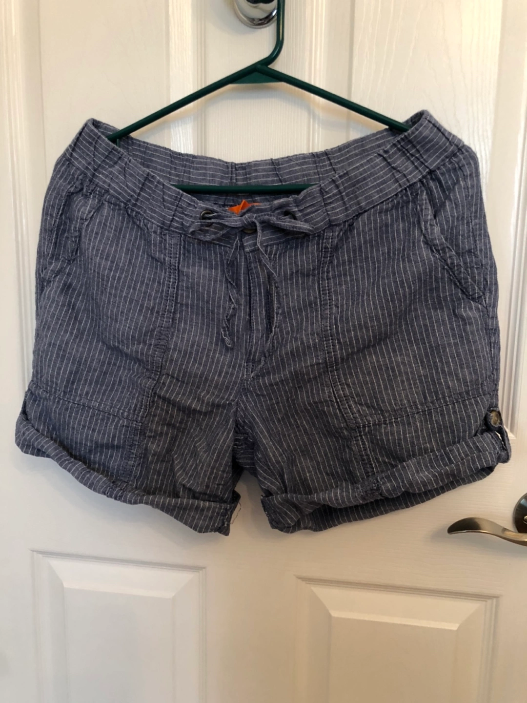 Size 8, drawstring, zipper, button; side button detail; working pockets