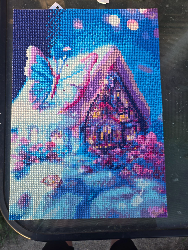 house withBlue white butterfly diamond painting