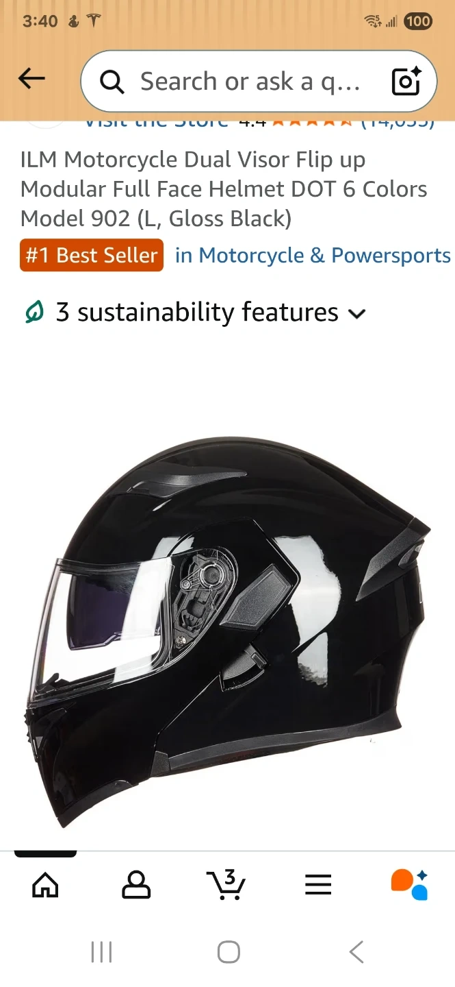 This ILM motorcycle helmet features a dual visor and flip-up modular design. It's DOT certified for safety. Available in gloss black. Size is Large (L).