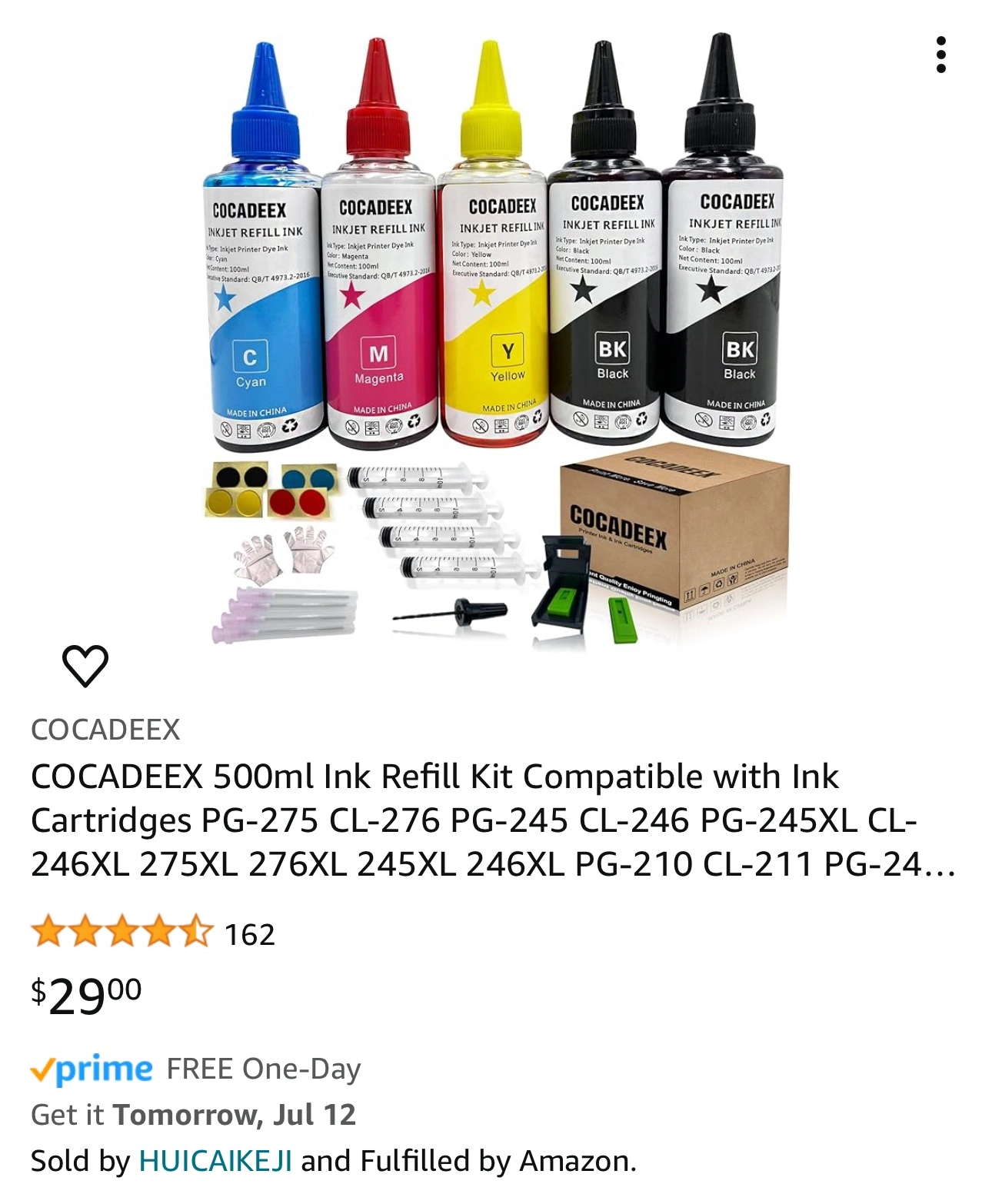 COCADEEX 500ml Ink Refill Kit Compatible with Ink Cartridges PG-275 CL-276 PG-245 CL-246 PG-245XL CL-246XL 275XL 276XL 245XL 246XL PG-210 CL-211 PG-243 CL-244