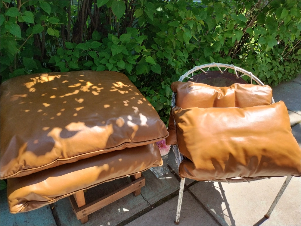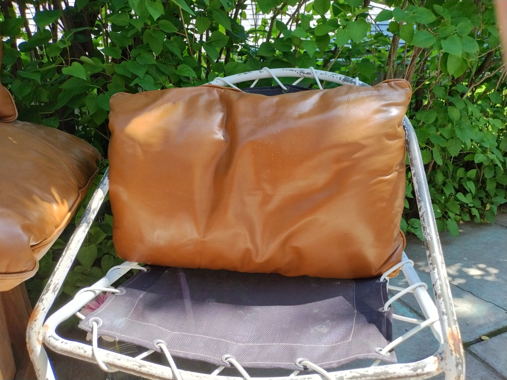 Supple leather covers, zippered, with feather or down fill.