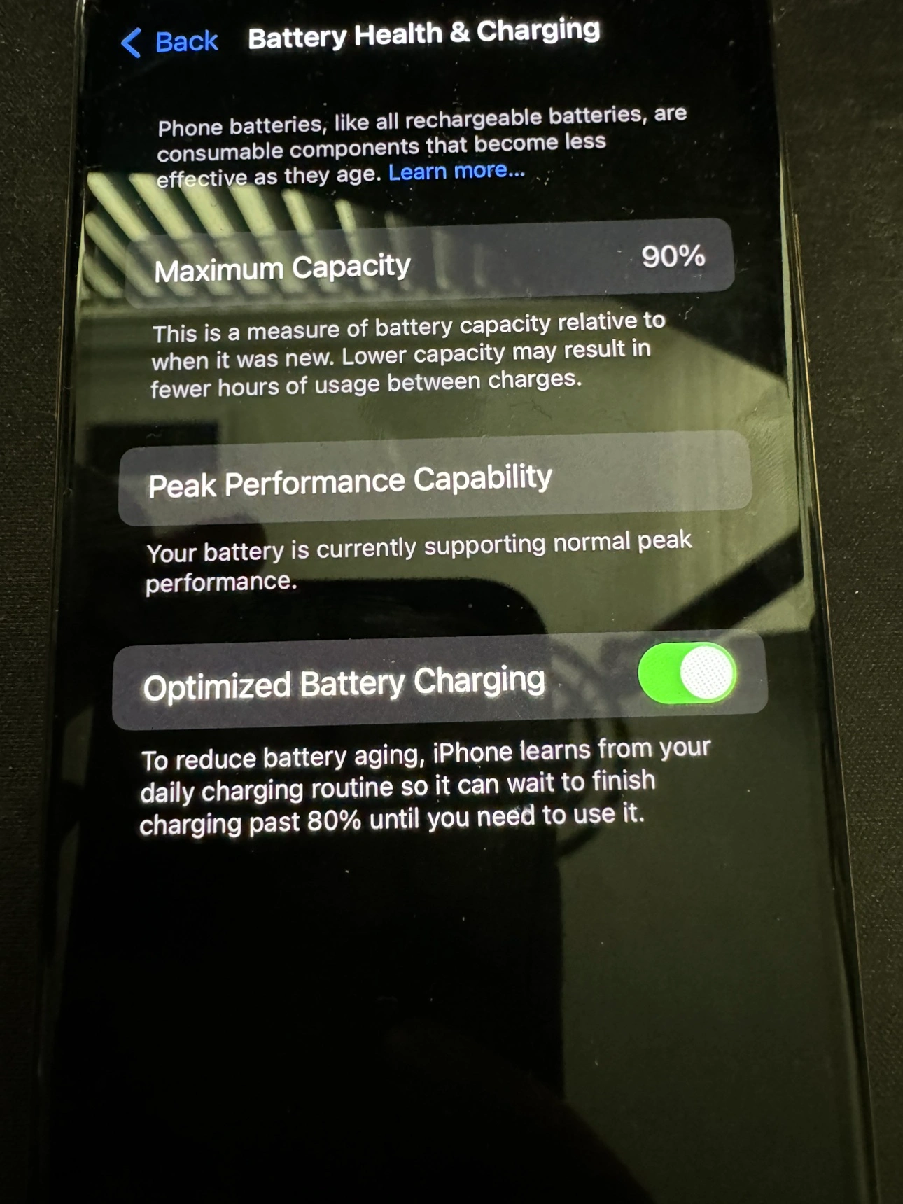 In 7 or 8 condition (has some cosmetic blemishes), 90% battery (original battery)