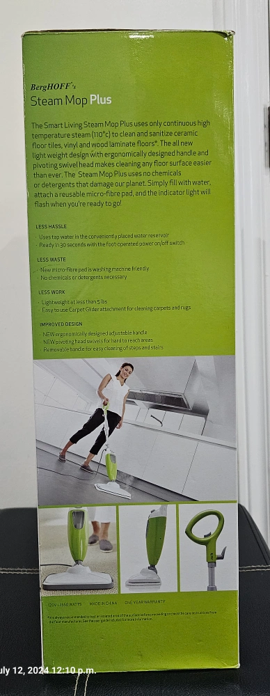 The Smart Living Steam Mop Plus uses only continuous high temperature steam (10°c) to clean and sanitize ceramic floor tiles, vinyl and wood laminate floors*. The all new ight weight design with ergonomically designed handle and pivoting swivel head makes cleaning any floor surface easier than ever. The Steam Mop Plus uses no chemicals or detergents that damage our planet. Simply fillwith water. attach a reusable micro-fibre pad, and the indicator light will flash when you're ready to go!