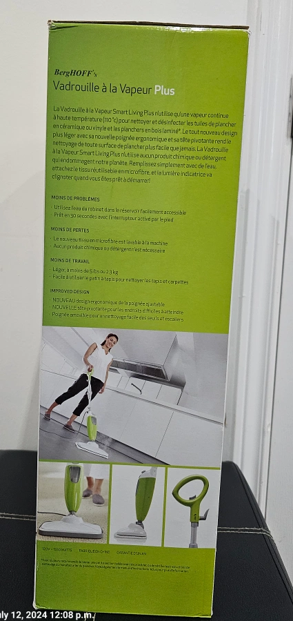 The Smart Living Steam Mop Plus uses only continuous high temperature steam (10°c) to clean and sanitize ceramic floor tiles, vinyl and wood laminate floors*. The all new ight weight design with ergonomically designed handle and pivoting swivel head makes cleaning any floor surface easier than ever. The Steam Mop Plus uses no chemicals or detergents that damage our planet. Simply fillwith water. attach a reusable micro-fibre pad, and the indicator light will flash when you're ready to go!