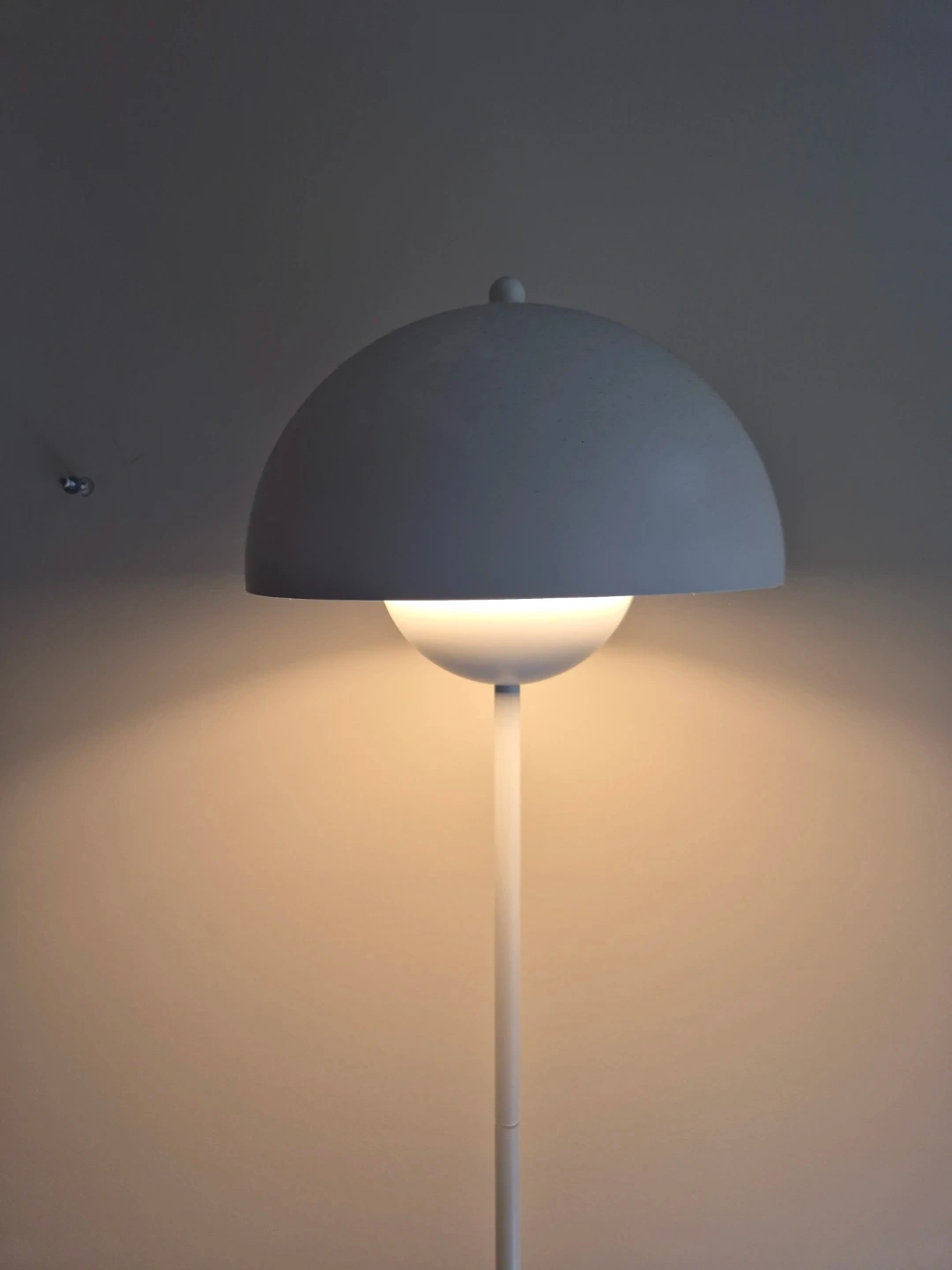 This white arc floor lamp provides a stylish and functional lighting solution. It features a sturdy base and a dome-shaped shade. The lamp has a simple on/off switch on the cord. It's perfect for adding ambient light to your living room or reading nook.