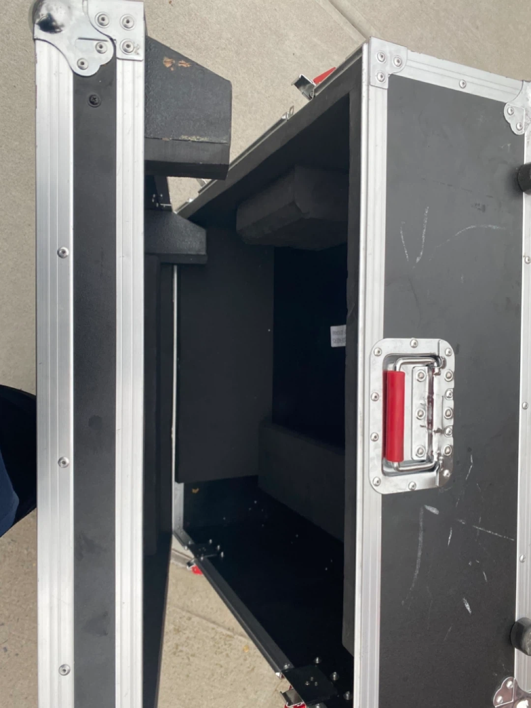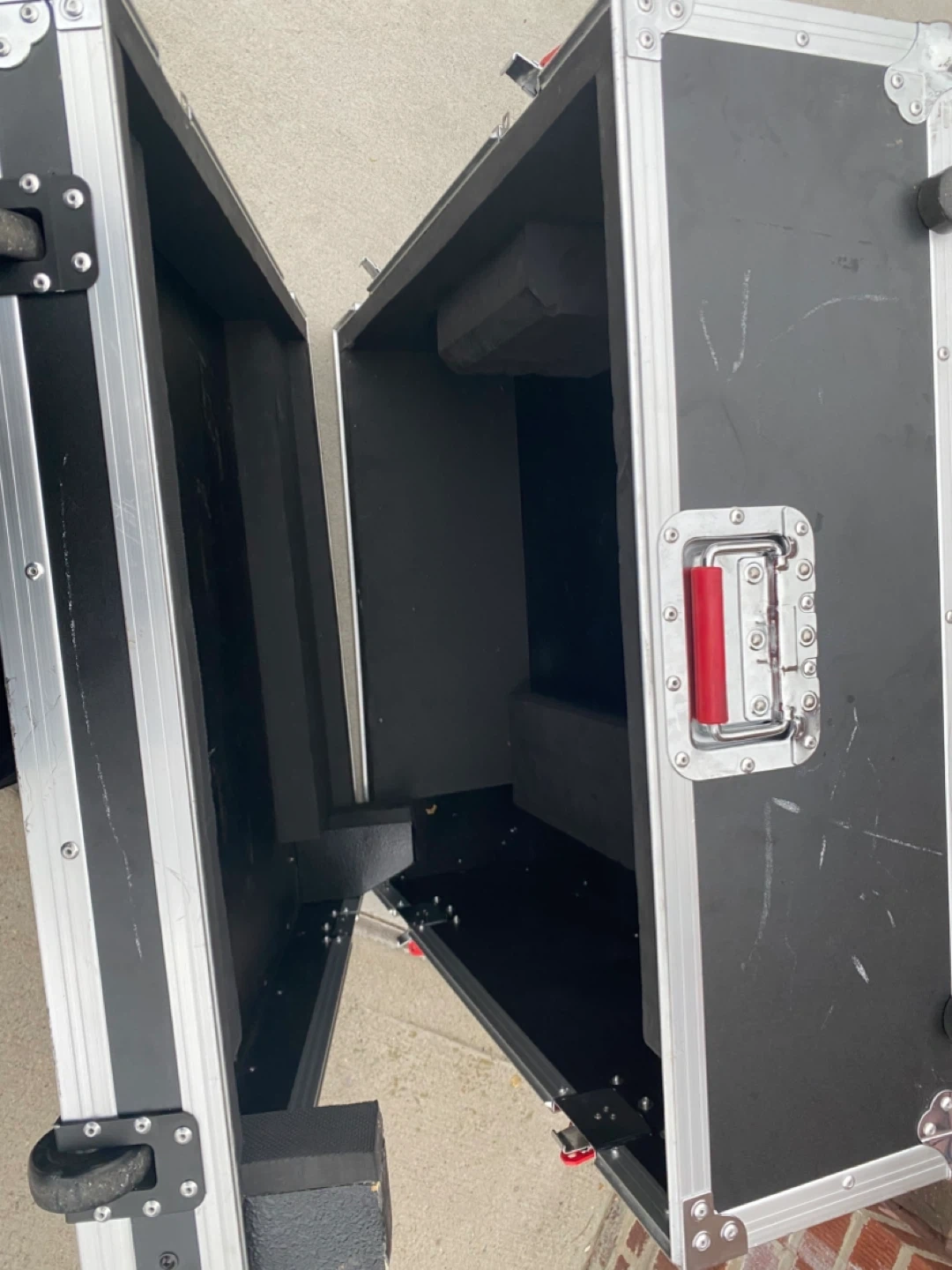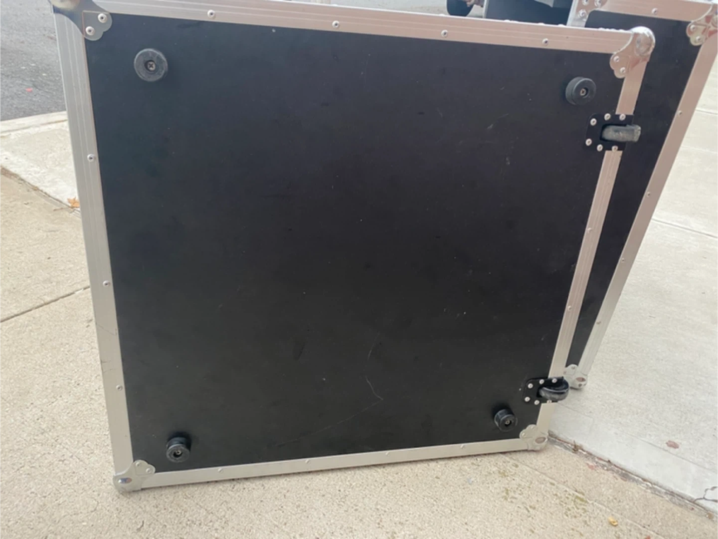 Heavy duty road case with wheels and handle. It's designed for protecting equipment during transport. Interior is padded for extra protection. Great for musicians and DJs!