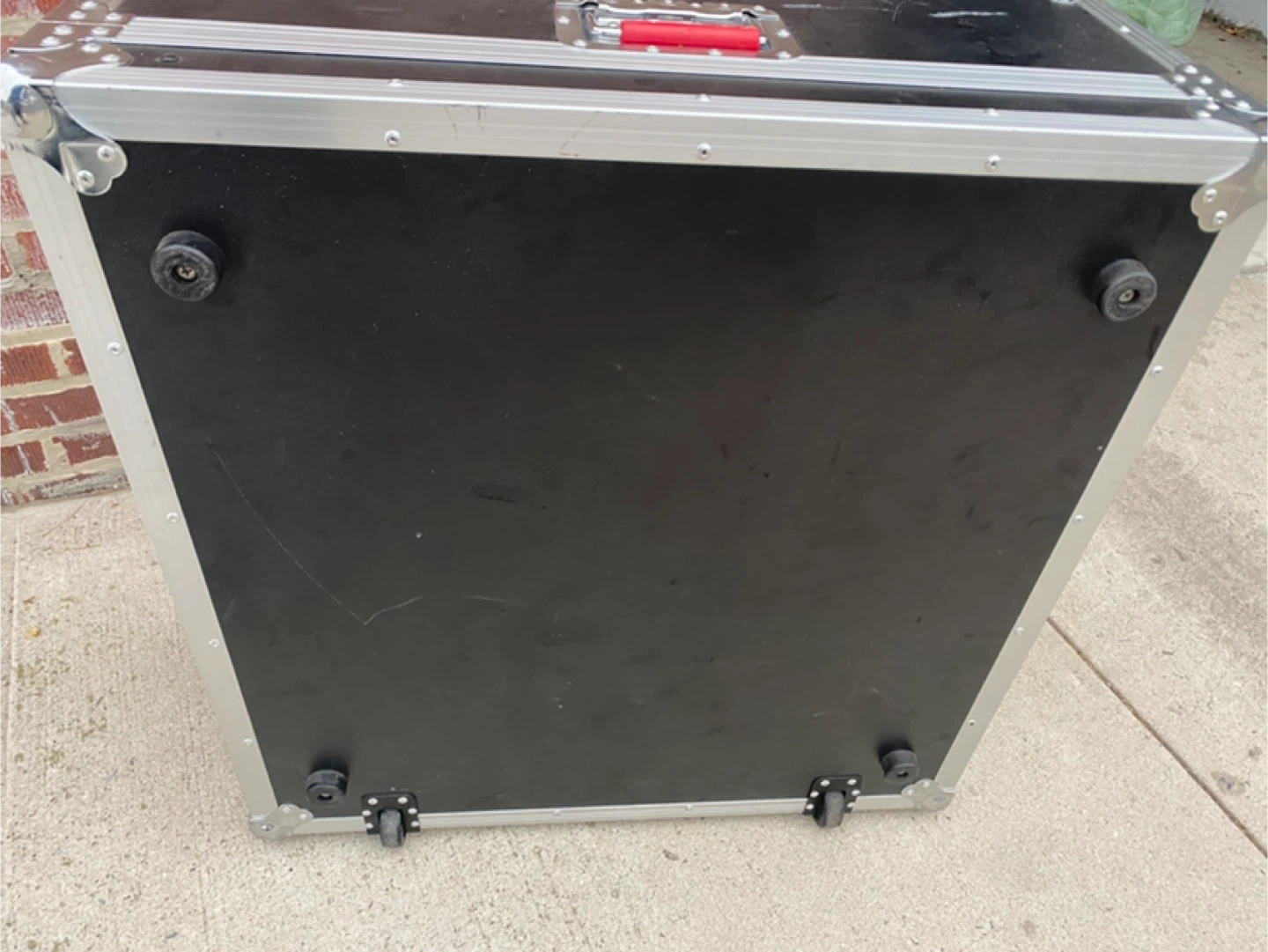 Heavy duty road case with wheels and handle. It's designed for protecting equipment during transport. Interior is padded for extra protection. Great for musicians and DJs!