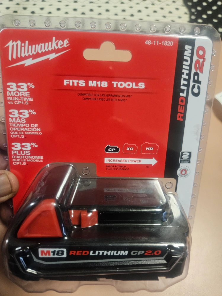 I'm selling a brand new Milwaukee M18 RedLithium CP2.0 battery! This battery fits M18 tools and provides up to 2x more run-time and 20% more power compared to standard lithium batteries. It also offers 33% more run-time than the CP1.5 model. Get increased power and performance for your Milwaukee tools!