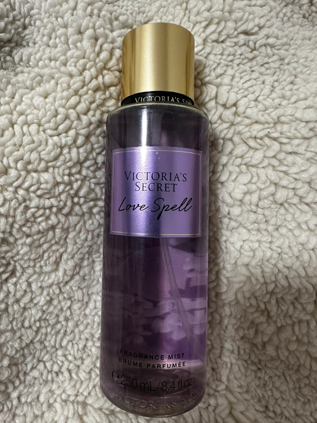 Victoria's Secret fragrance mist in two popular scents: Pure Seduction and Love Spell. Each bottle is 250 mL / 8.4 fl oz. Perfect for a quick refresh or layering scent throughout the day!