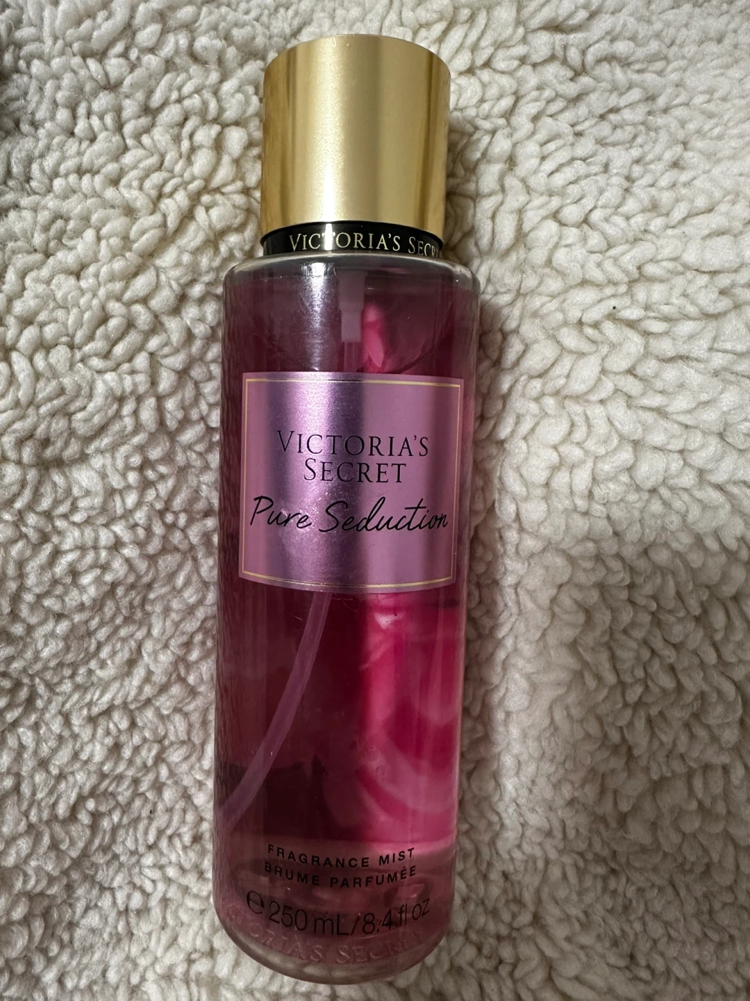 Victoria's Secret fragrance mist in two popular scents: Pure Seduction and Love Spell. Each bottle is 250 mL / 8.4 fl oz. Perfect for a quick refresh or layering scent throughout the day!