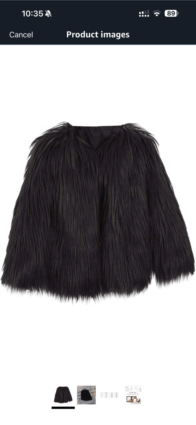 Selling a stylish faux fur jacket in black! It's in great condition and perfect for adding a touch of glam to any outfit. The material is soft and fluffy, making it super cozy for cooler weather