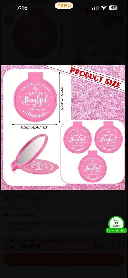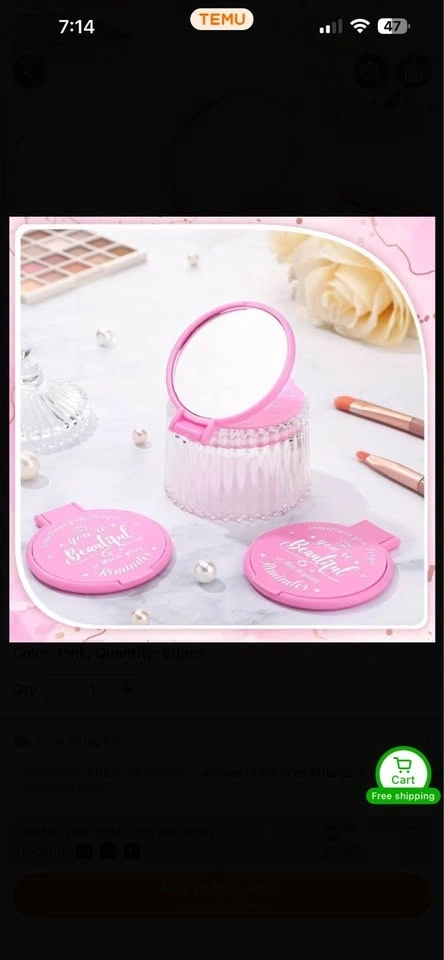 Buy & Sell20pc Mirror Party Favors - Pink20pc Mirror Party Favors - Pink$15Amazing idea for girly party favors. "Sometimes you forget you’re beautiful, this is your reminder." Please check my profile 🙏🏻WHERE TO MEETCheck LocationView MapSELLERRosieEcho Place311 review0 chats·0 favorites·1 viewsSEND CHAT TO SELLERHi Rosie! I’m interested in your listing.Hi Rosie! I’m interested in your listing.Get the Karrot app to chatSign In to chat