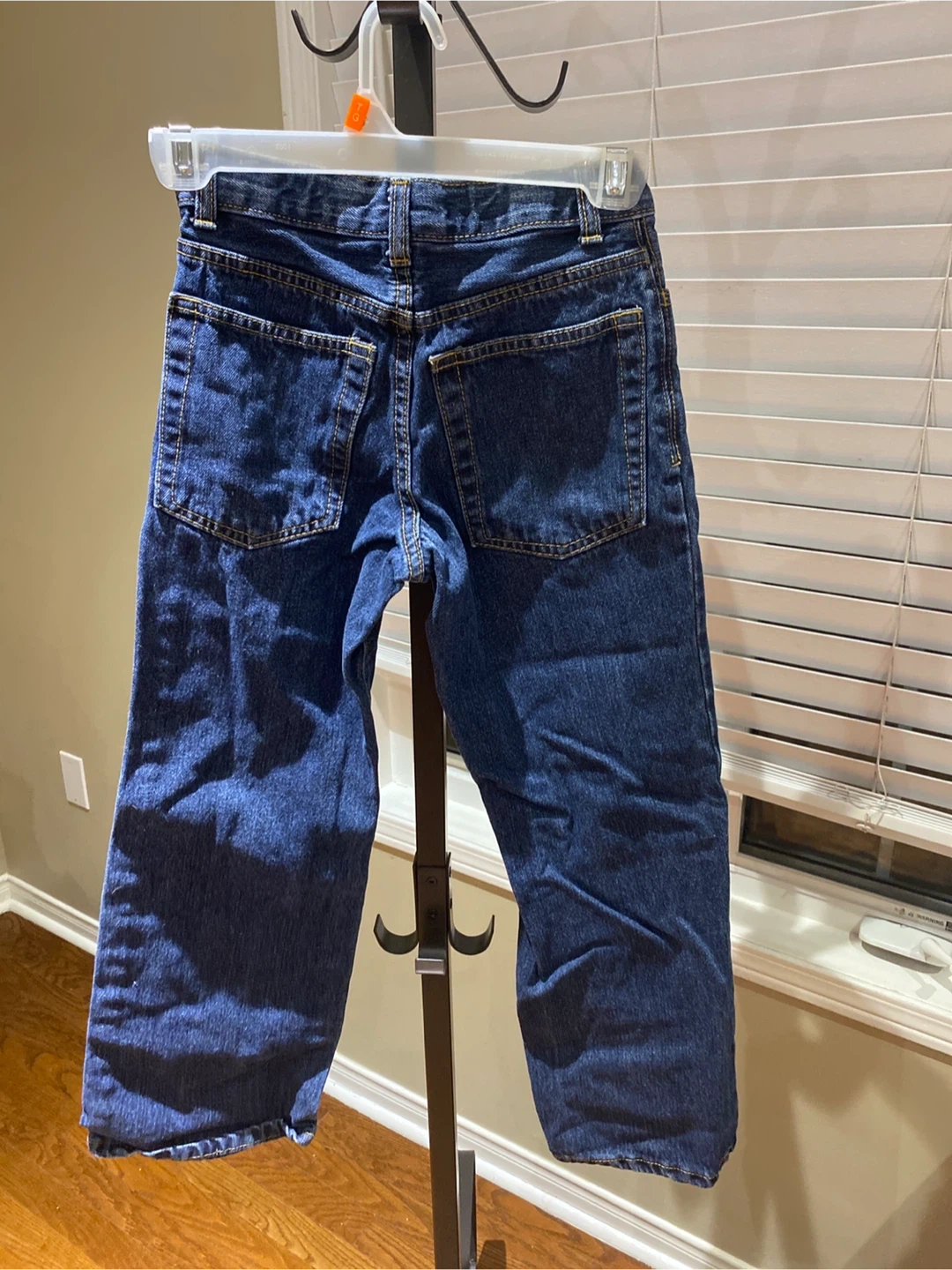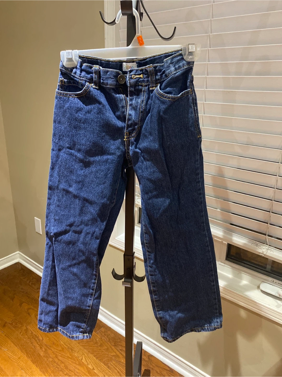 These are children's blue denim jeans. They're made of a sturdy cotton blend. These jeans are great for everyday wear.