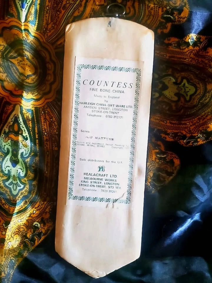 1971 vintage bone china black velvet wall decor