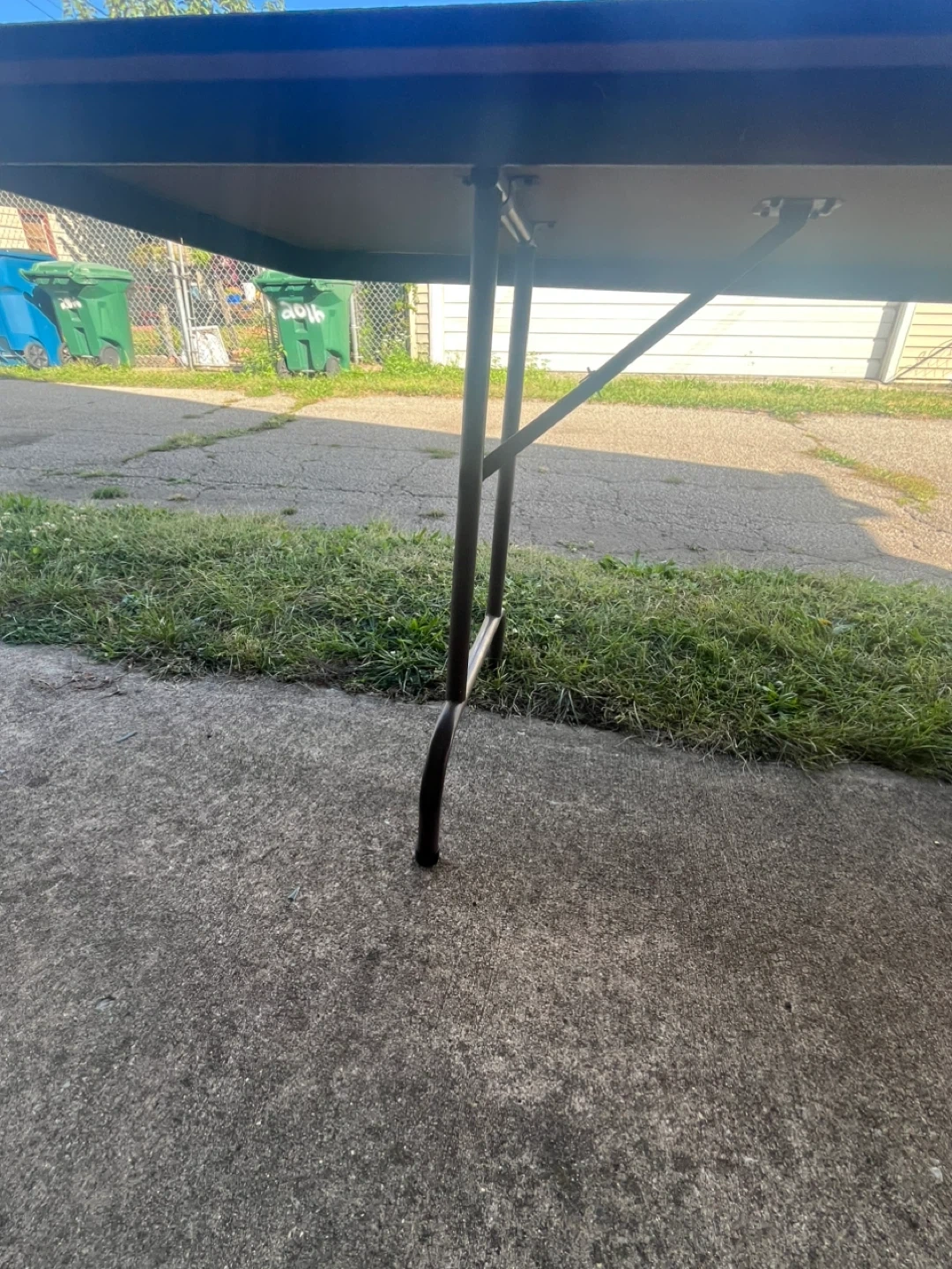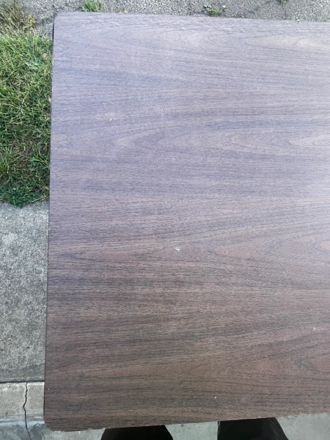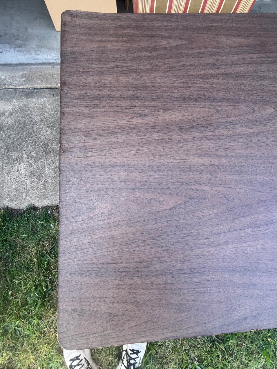 Selling a folding table that's perfect for events or extra space! It's brown and has folding legs for easy storage. It has some wear and tear, but is still sturdy and functional.
