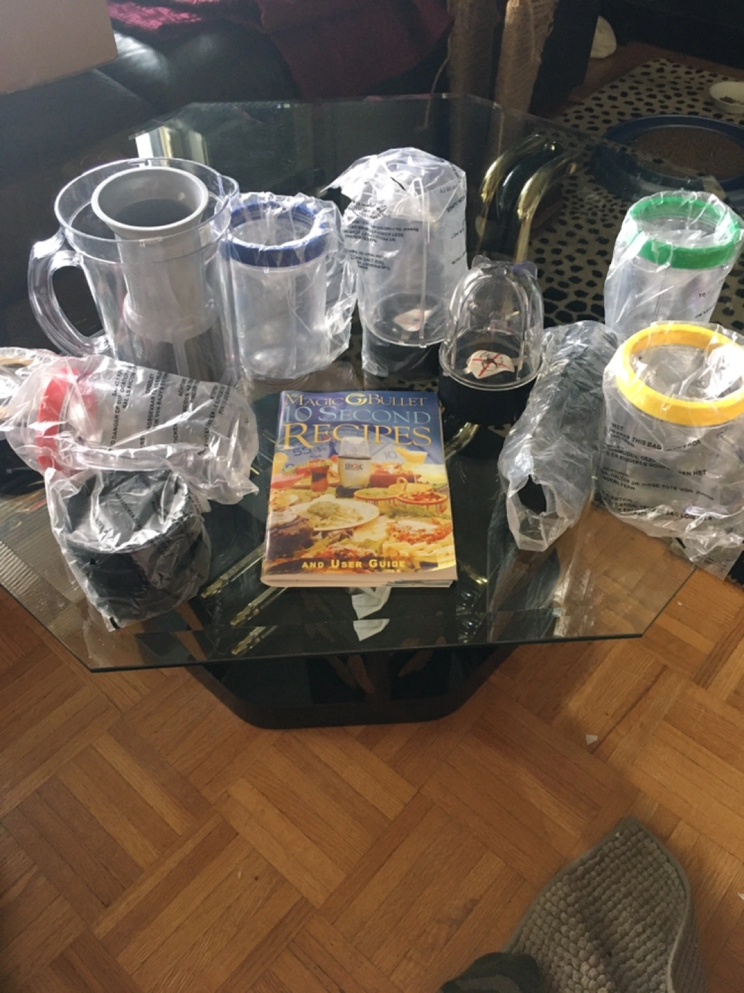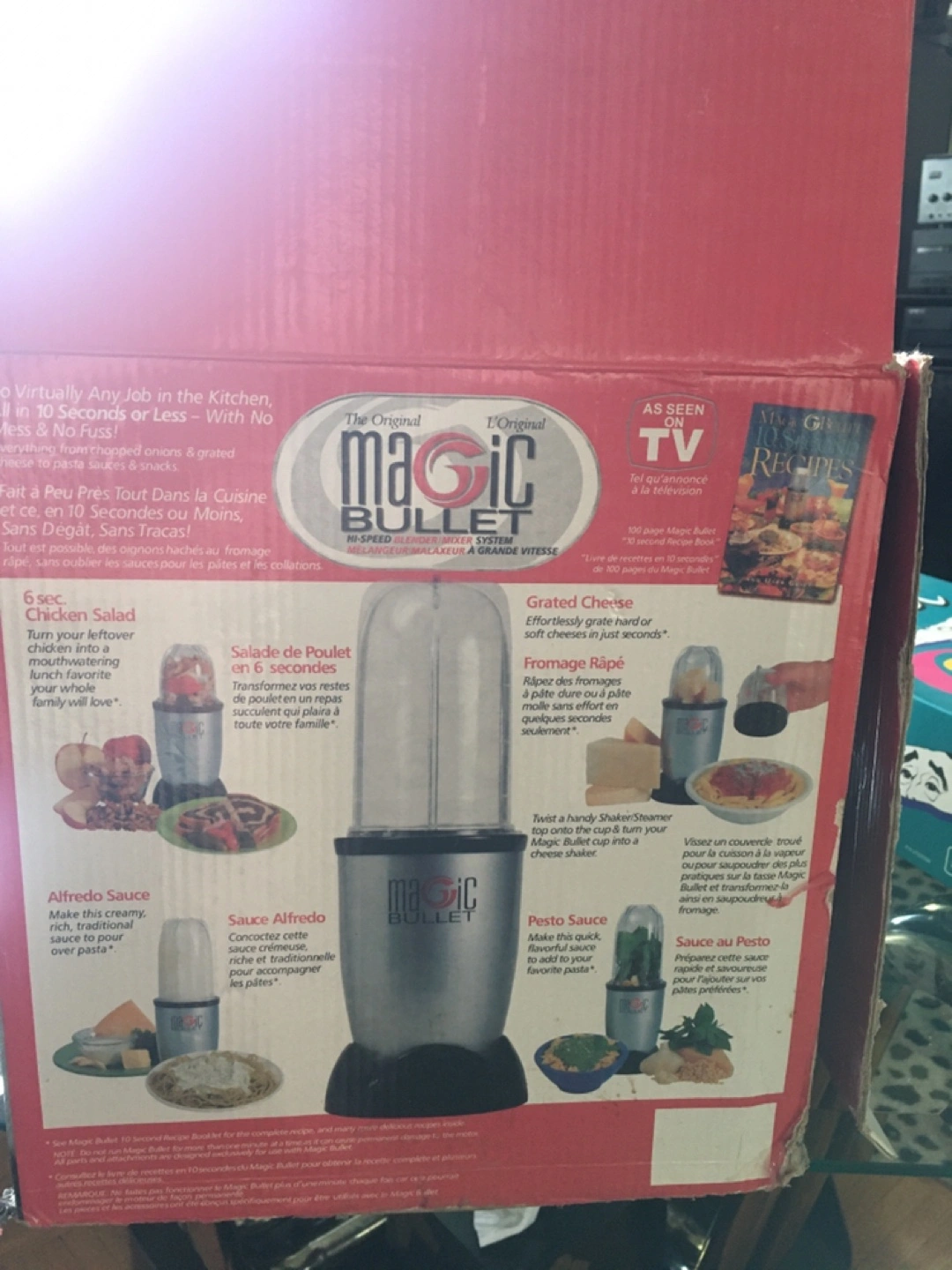 Get ready to blend up a storm with this Magic Bullet 21-piece set! It's perfect for whipping up smoothies, sauces, and more in just seconds. The set includes a variety of cups and blades to handle all your blending needs. Comes with the original recipe book for inspiration. The box is in very bad condition BUT the bullet in new, never used. Sells for $60 on Amazon. Pick up and cash only pls π