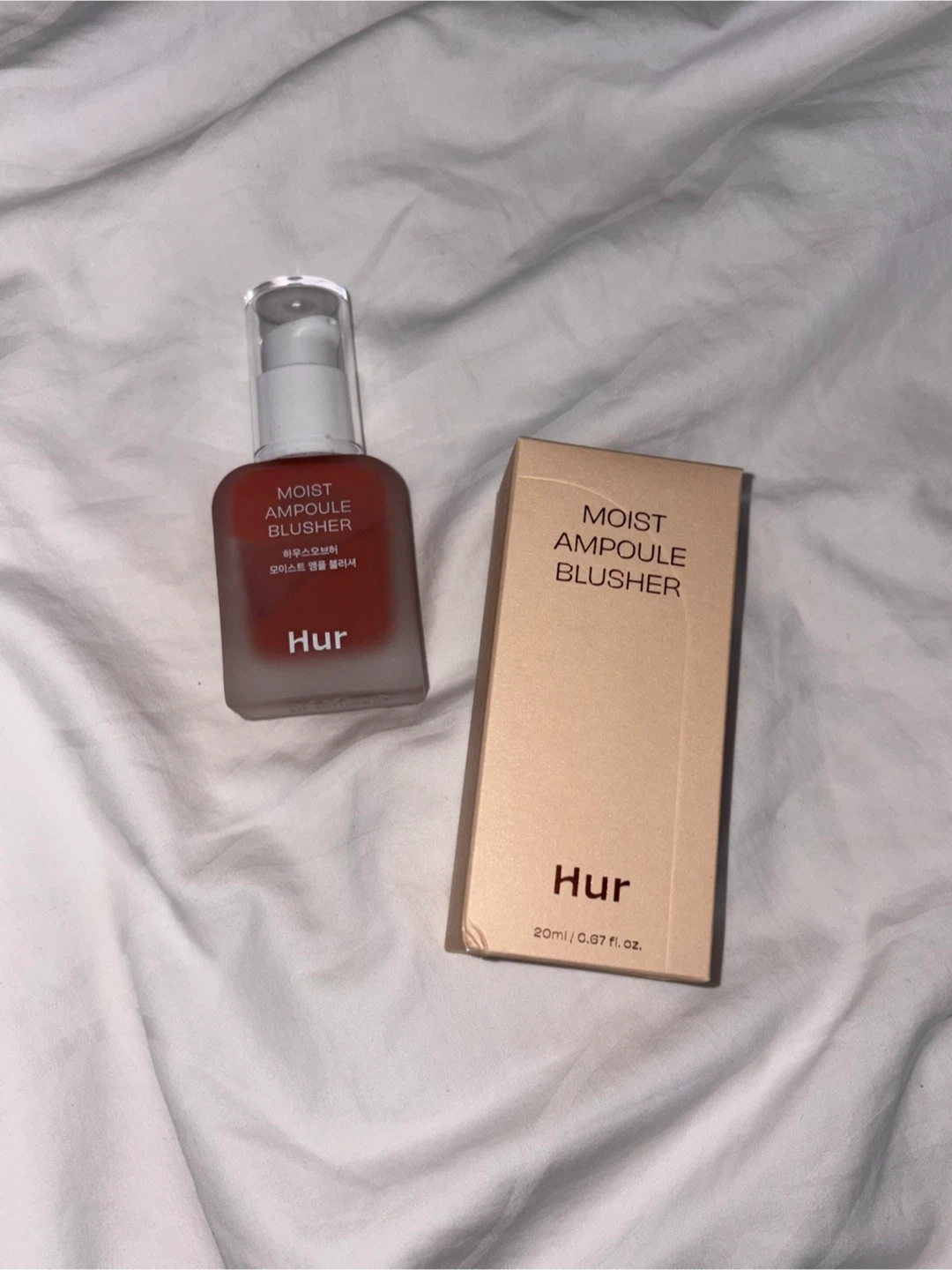 This is the Hur Moist Ampoule Blusher in the shade Rose Brown. It's a 20ml bottle. This blusher provides a moist finish to the cheeks.