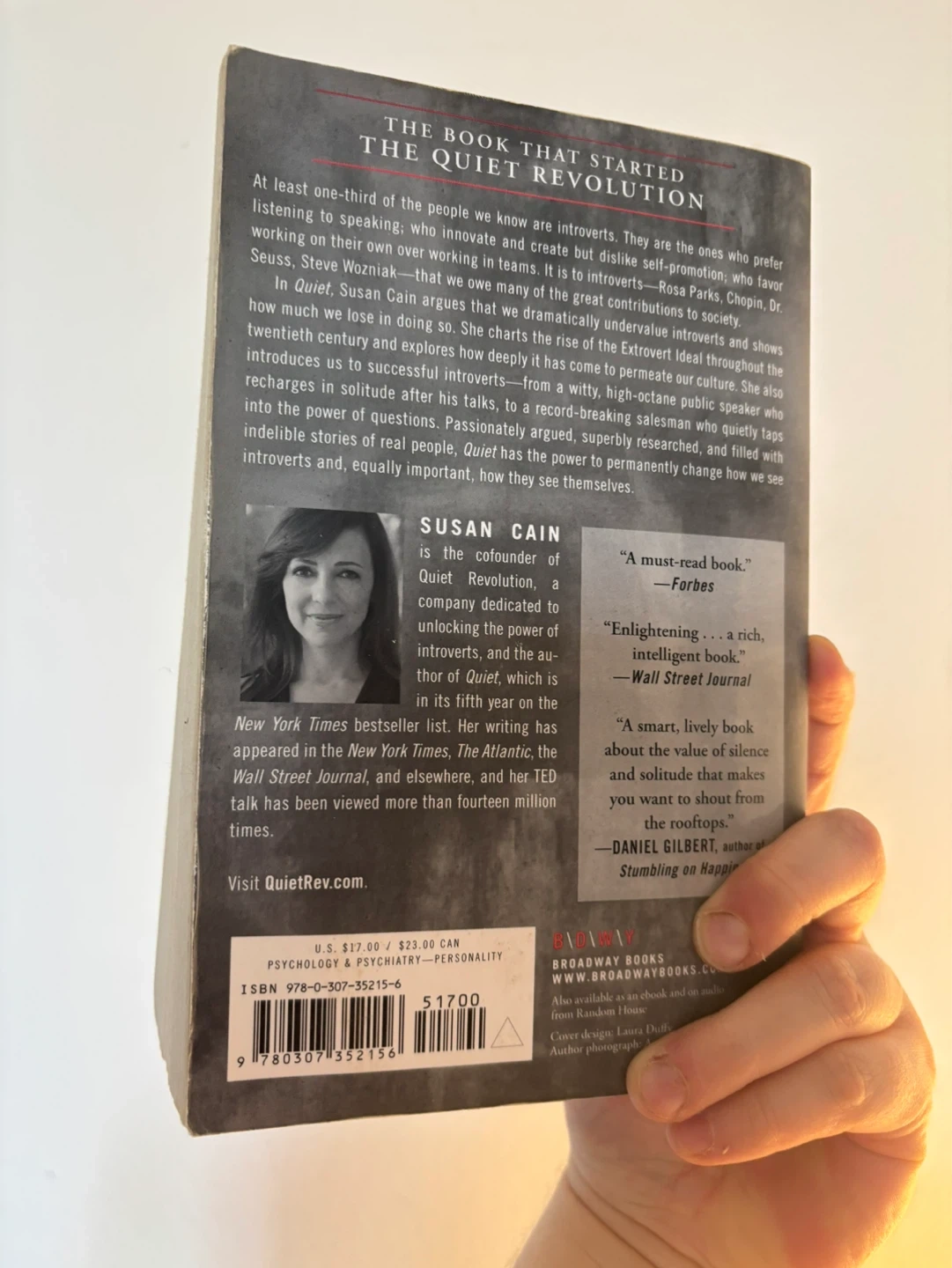The New York Times Bestseller, "Quiet: The Power of Introverts in a World That Can't Stop Talking" by Susan Cain. Explores the science and psychology behind introversion. Paperback edition.