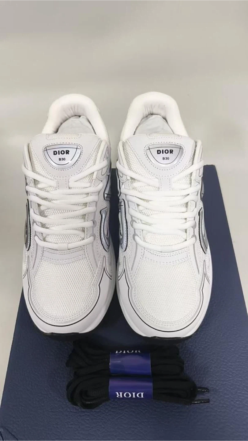 Selling a pair of brand new Dior B30 sneakers in white! These stylish sneakers are in excellent condition and come with an extra pair of laces. Perfect for adding a touch of luxury to your everyday look